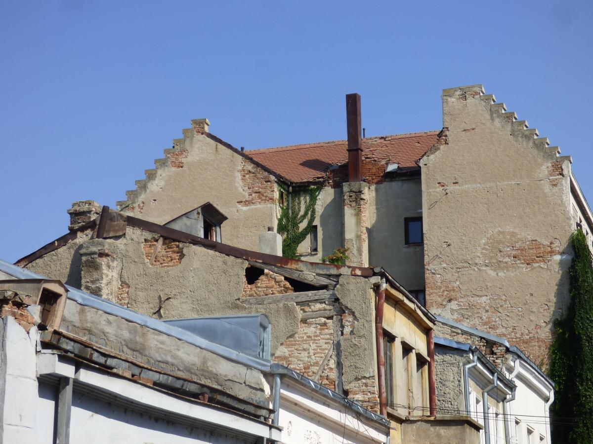 • clădirile vechi şi neconsolidate de pe raza municipiului continuă să pună în primejdie integritatea corporală a pietonilor, în ciuda unor măsuri de constrângere pe care Primăria anunţă că le ia împotriva proprietarilor indolenţi