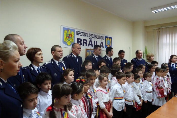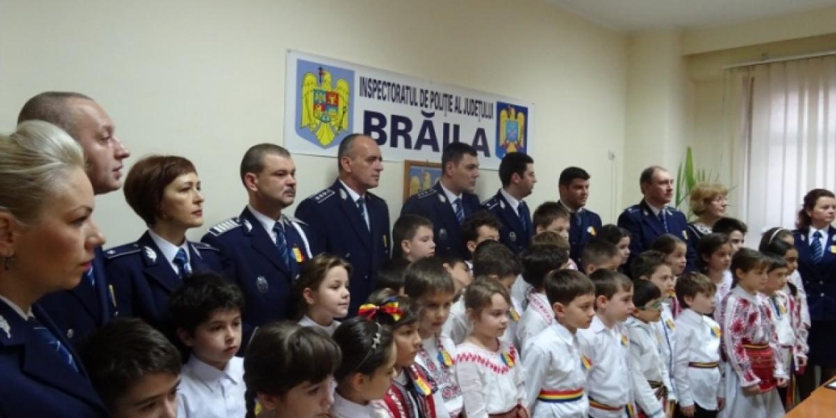 Zeci de elevi de la două şcoli generale din municipiu, plus cei de la Centrul de Ziaristică şi Comunicare, au avut parte de momente palpitante la sediul Inspectoratului de Poliţie Judeţean Brăila, organizate cu ocazia Zilei Naţionale a României. În primă fază, copiii au susţinut momente artistice în faţa conducerii IPJ, îmbrăcaţi în costume populare, apoi mascaţii i-au „răsplătit" cu un exerciţiu specific activităţii lor. Focurile de armă şi intervenţia pentru prinderea unor infractori au fost deliciul celor mici.