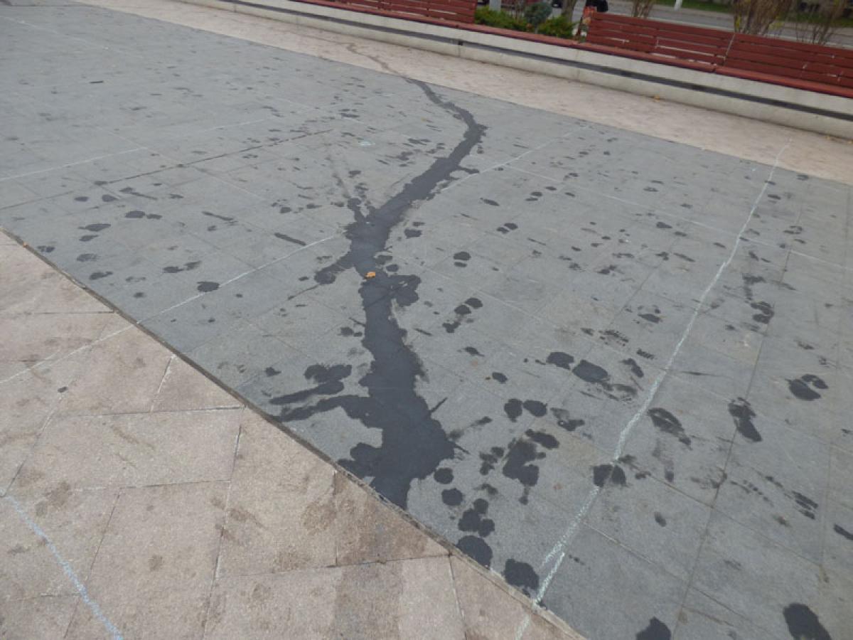Un alt aspect amendabil şi greu de remediat este acela că între băncile recent vopsite şi jardiniere platoul este murdărit cu lungi urme de ulei ars.
