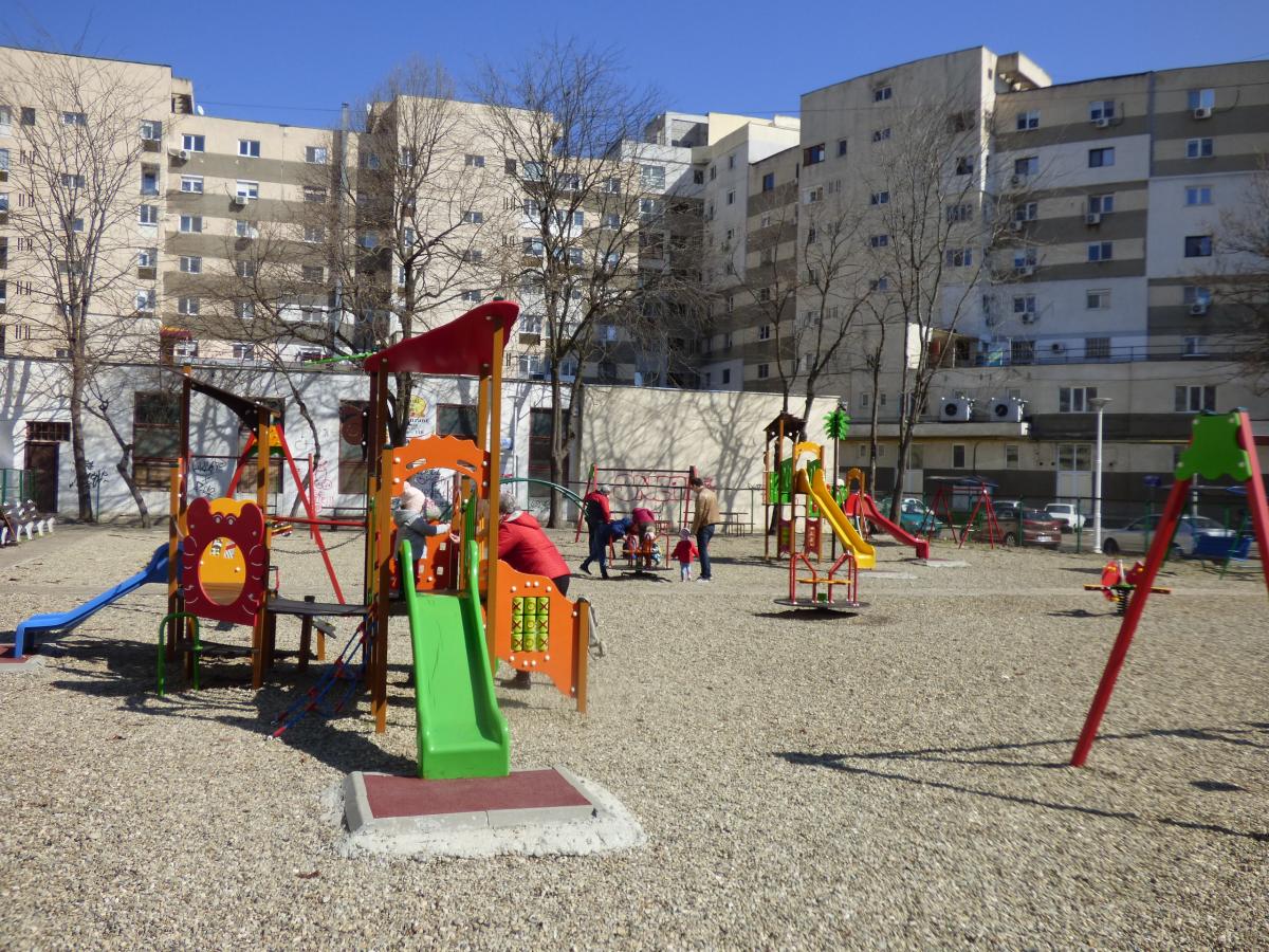 De “n” ori acest spaţiu a fost devastat, distrus, incendiat şi tot de “n” ori reparat şi completat de către Primărie, prin Serviciul de Utilitate Publică, Administrare şi Gospodărire Locală din subordine. Dar, ca şi în cazul magazinului, nu s-a auzit ca vreunul dintre cei care, aproape seară de seară, până după miezul nopţii, se adunau aici pentru chefuri, scandal, înjurături etc - să fie prins şi amendat ori să suporte contravaloarea pagubelor pricinuite. O cameră video nu există aici, nimeni în uniformă nu trece prin zonă, iar desfiinţarea băncilor - propunere făcută de asociaţia de proprietari -, nu este acceptată de Primărie. Lucru oarecum firesc, doarece în mod normal ar trebui să prevaleze un comportament civilizat pe domeniul public, păstrându-se dotările edilitare. Uşor de spus, numai că bunul simţ, ordinea şi disciplina, necesită de multe ori şi măsuri coercitive. Mai ales că amintitul loc de joacă pentru copii este acum dotat şi suplimentat numai cu lucruri absolut noi şi cu un design plăcut!