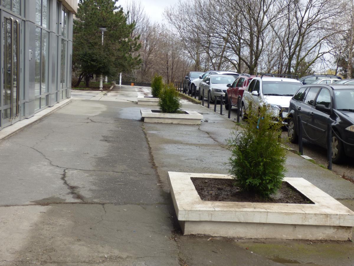 Spaţiile comerciale sunt tot închise, numai că, de ceva vreme, lucrurile s-au schimbat radical în bine, măcar la capitolul de imagine. “Nu mai puteam continua aşa!”, ne-a declarat inimoasa preşedintă a Asociaţiei de Proprietari nr. 18, Rodica Chiriţă, adăugând: “Nu ne-a ajutat nimeni cu un leu, însă am găsit înţelegere şi ne-am bucurat de colaborarea cu noua conducere de la METEX Brăila, care suportă contravaloarea lucrărilor efectuate de noi cu câteva persoane, plus materialele necesare spălării şi curăţirii geamurilor, a pereţilor din aluminiu precum şi curăţenia din interiorul fostelor magazine. Totul se ridică la 20 de milioane lei vechi. Chinul folosirii de chimicale - detergenţi, diluanţi toxici,şpacluri etc) a durat două săptămâni, iar, în plus, proiectoarele şi camerele video montate sperăm să-i descurajeze pe răufăcători. Din păcate, până acum niciunul nu a fost prins şi amendat… Menţionez că tuia din jardiniere e plantată pe banii asociaţiei. În continuare urmează alt chin: aducerea la lumină şi a zidurilor, pline de mizeriile făcute de aceiaşi autori”.