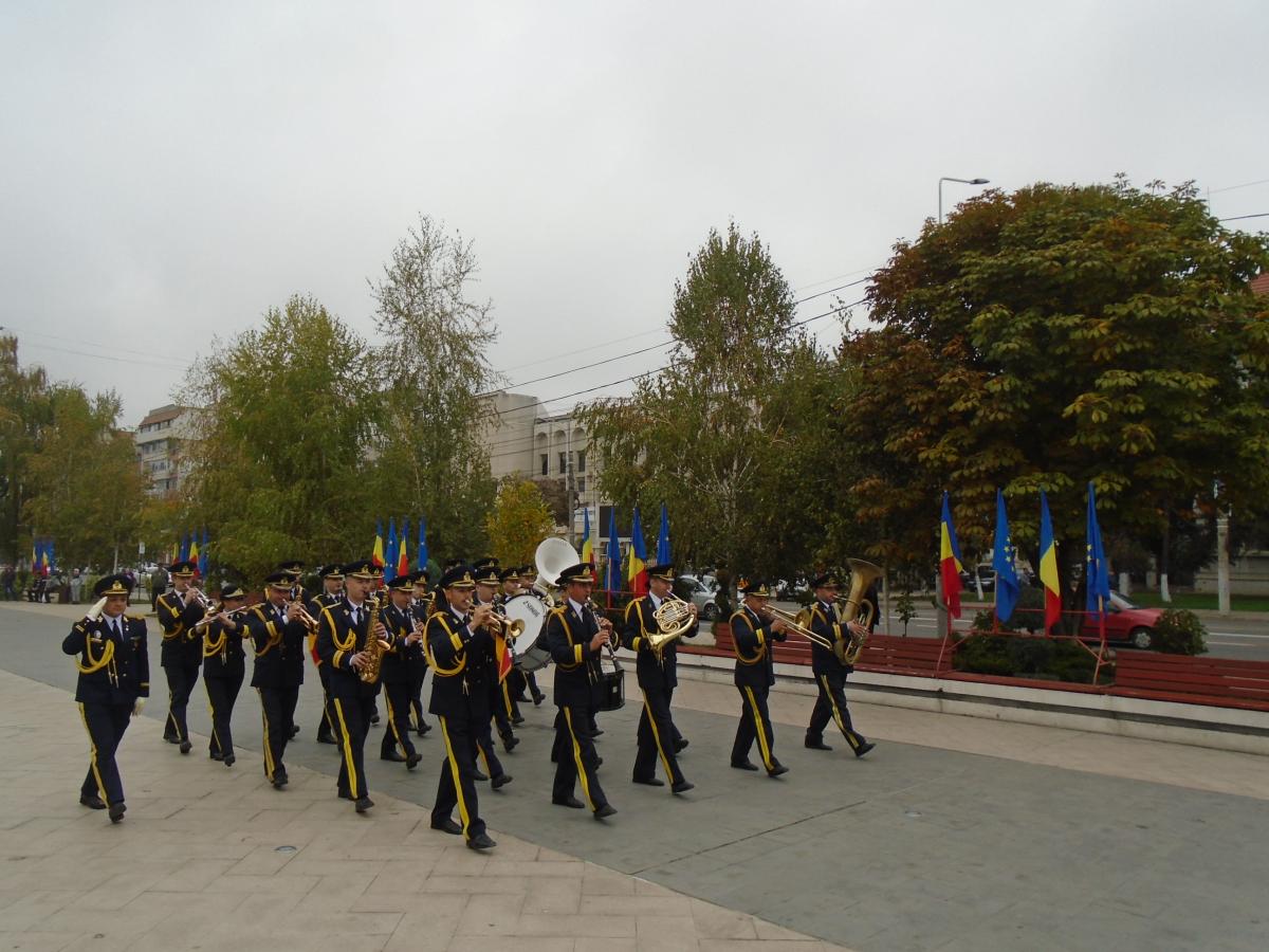 După defilarea trupelor - cu steagul de luptă al Brigăzii 10 Geniu "Dunărea de Jos" în frunte - militarii, oficialităţile locale, precum şi politicienii brăileni au depus coroane şi jerbe de flori la Monumentul slt. erou Ecaterina Teodoroiu, "Eroina de la Jiu", amplasat în Piaţa Independenţei.