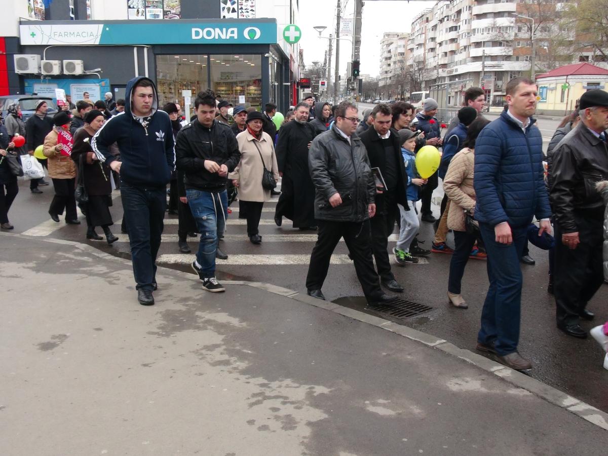 Peste 800 de persoane au participat în această după amiază la Marşul pentru Viaţă. Enoriaşii din mai multe parohii s-au întâlnit în faţă bisericii Sfânta Cuvioasă Parascheva, iar de aici au plecat spre Catedrala Naşterea Domnului. În faţa bisericii toate femeile participante la marş au primit o floare. La manifestare, pe lângă adulţi, au participat şi copii. Aceştia au format un lanţ de baloane.