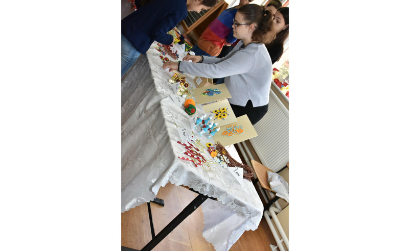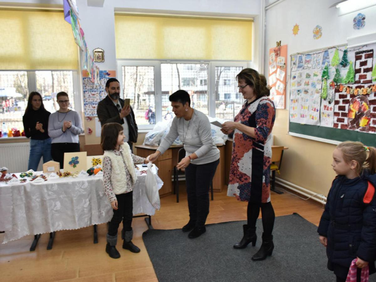 Chiar vineri, în cadrul Târgului de Crăciun organizat la şcoală, s-au vândut cele mai reuşite piese realizate de elevi în cadrul atelierelor. Printre obiectele expuse, au fost şi figurine specifice Sărbătorilor de Iarnă: oameni de zăpadă, globuleţe - realizate cu ajutorul tehnicii quilling.