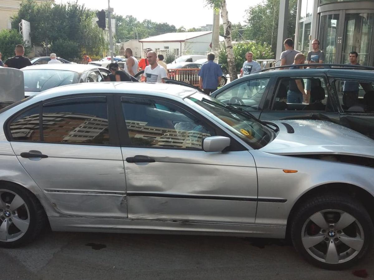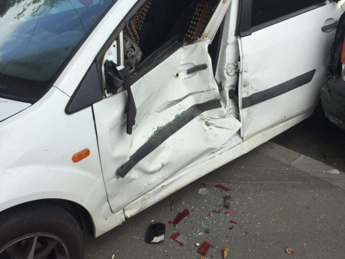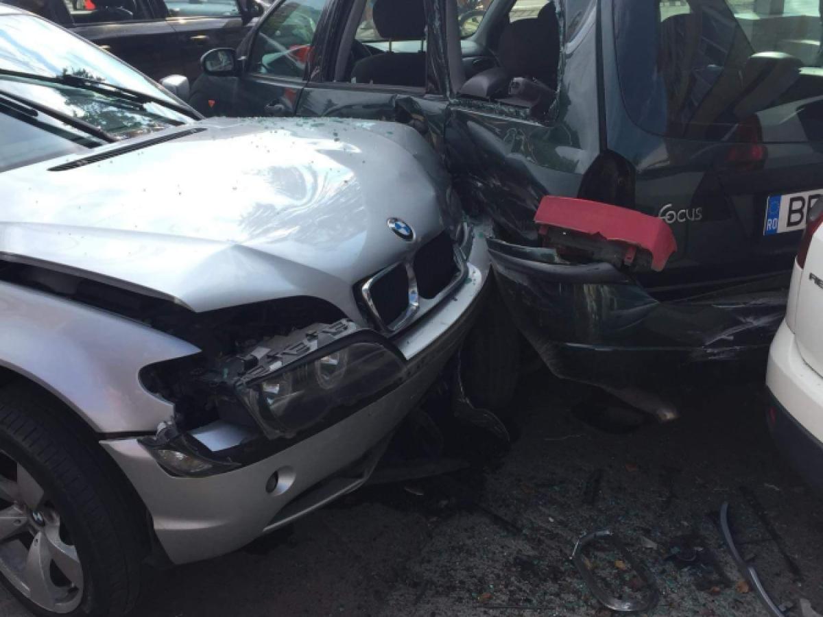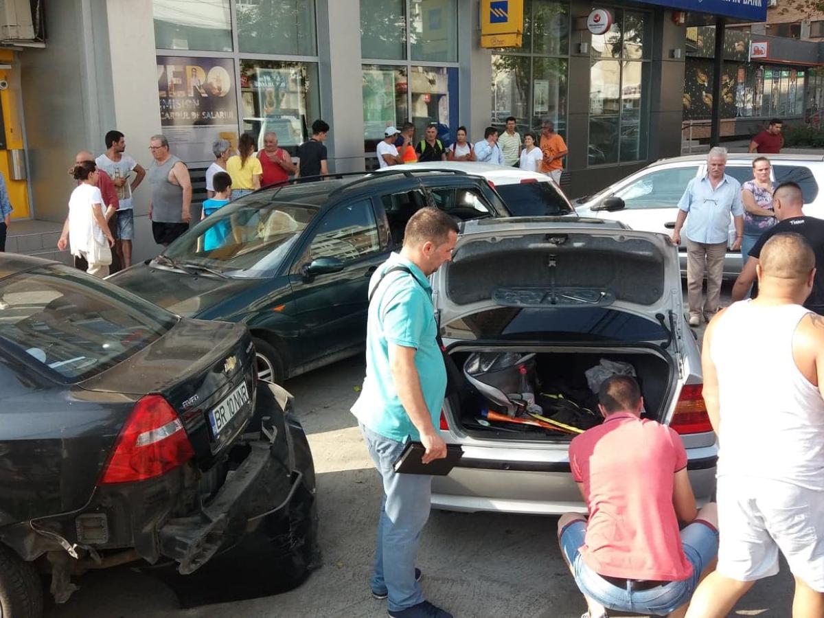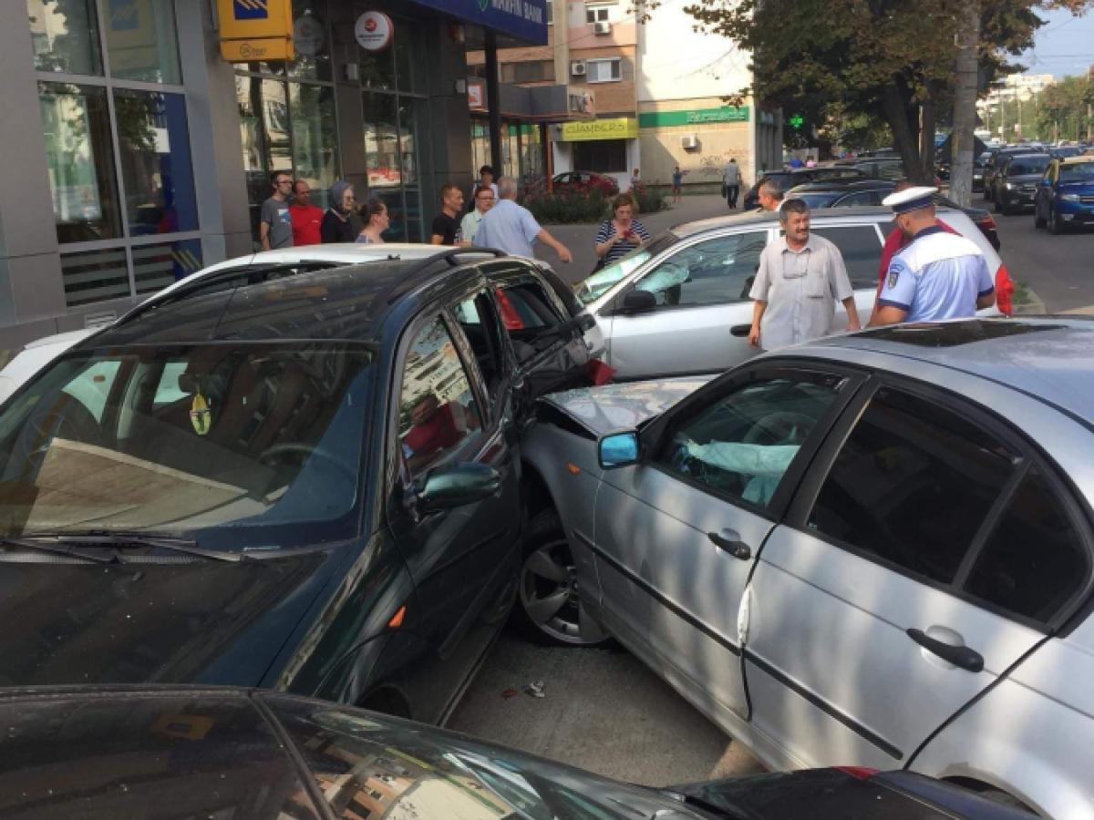 * trafic îngreunat pe Calea Călărașilor, din cauza unui accident rutier * două mașini au ajuns la intersecția cu Griviței, iar unul dintre șoferi a vrut să vireze stânga, moment în care mașinile s-au ciocnit * ca într-un joc de popice, alte 4 autoturisme parcate au fost acroșate