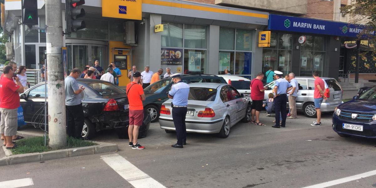 Traficul pe Calea Călărașilor se desfășoară cu dificultate din cauza unei tamponări spectaculoase, în care au fost implicate 6 autoturisme. Evenimentul s-a produs în zona Piața Concordia. Două mașini au fost implicate, cel puțin în primă fază: una condusă de un brăilean de 39 de ani și cealaltă, de o șoferiță din Prahova, de 30 de ani. Autoturismele circulau pe Calea Călărașilor, în același sens, însă la intersecția cu Grivița, unul dintre șoferi a vrut să vireze stânga. În urma impactului au mai fost acroșate alte 4 autoturisme care erau parcate în imediata apropiere a intersecției. Din fericire, nu au rezultat victime, fiind doar pagube materiale. Ancheta polițiștilor este în desfășurare.