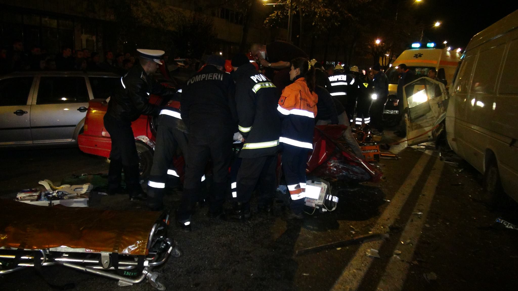 În urma evenimentului au rezultat 3 victime. La faţă locului au ajuns două echipaje de descarcerare, care au scos victimele din maşină. Pompierii au descarcerat atât şoferul vinovat, cât şi pe cel al dubiţei.