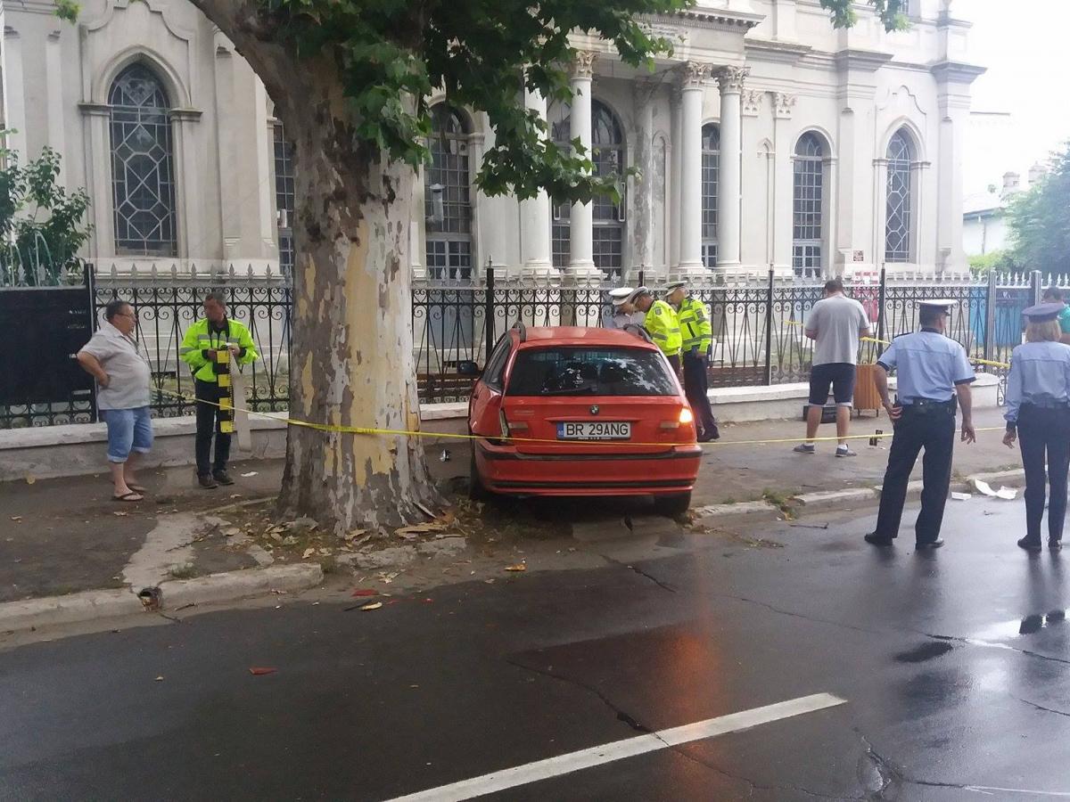Un șofer care circula cu mașina marca „BMW” pe Calea Călărașilor a pierdut controlul asupra volanului și a intrat într-un grup de nuntași care se afla pe trotuarul din fața Bisericii „Buna Vestire” (Biserica Greacă), din municipiu, duminică seara.