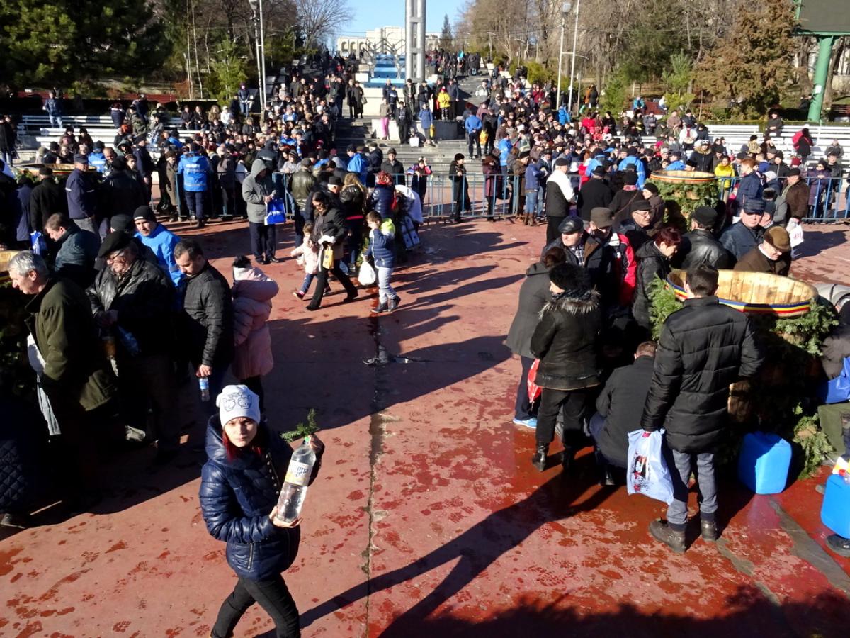Brăilenii care au asistat la slujbă și la momentul prinderii crucii s-au așezat apoi la coadă pentru a lua agheazmă din budanele de lemn. Totul a decurs într-o manieră civilizată, sub atenta supraveghere a jandarmilor.