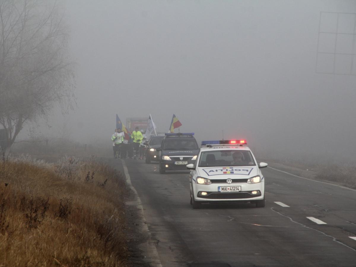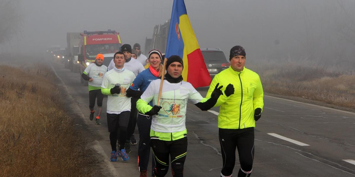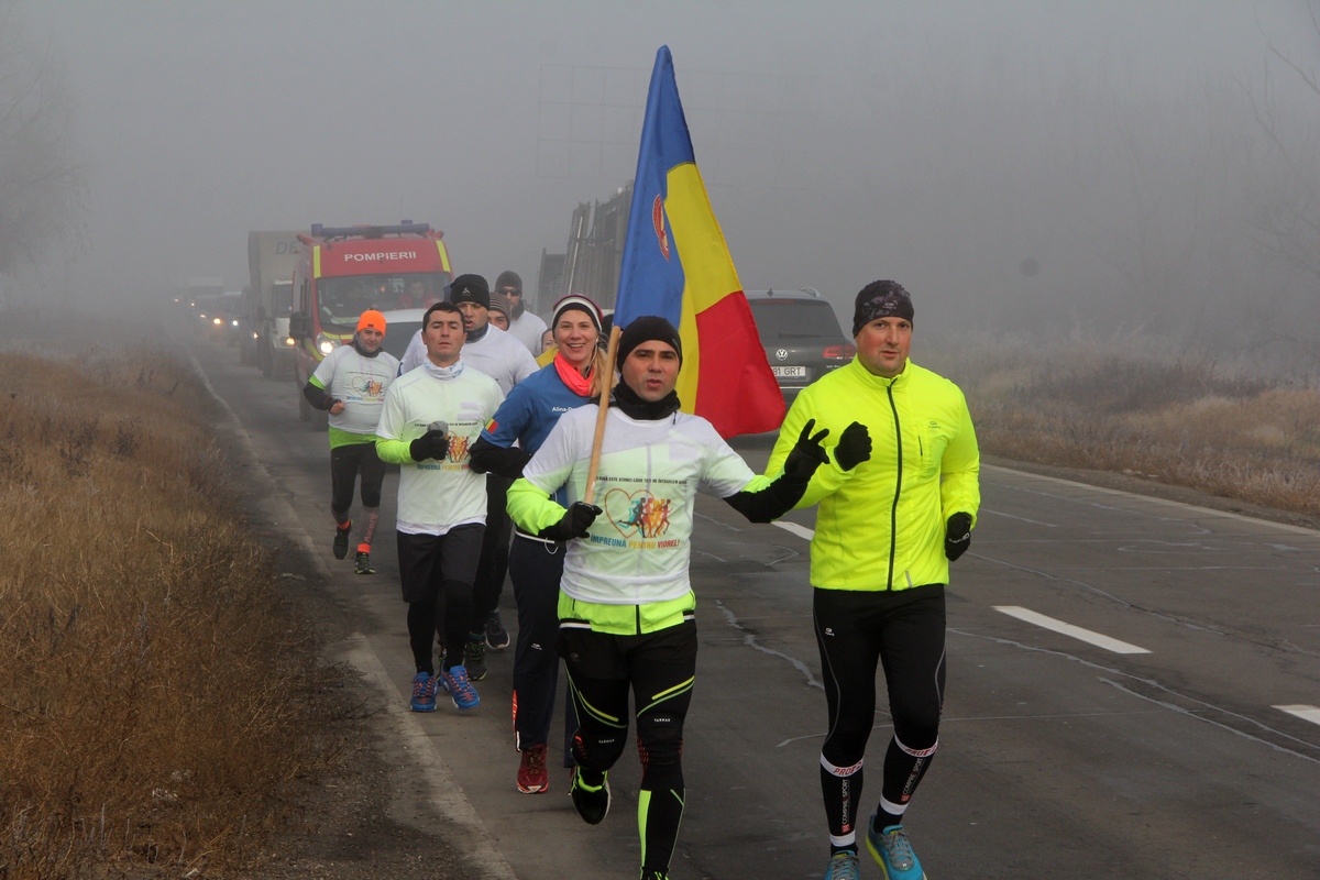 Nici frigul şi nici ceaţa densă nu i-a descurajat pe militarii, pompierii, poliţiştii şi civilii care şi-au propus să alerge într-un semimaraton, pe distanţa de circa 25 de kilometri dintre sediul ISU Galaţi şi sediul ISU Brăila, pentru a atrage atenţia asupra cazului umanitar al pompierului brăilean Viorel Dima, diagnosticat recent cu cancer esofagian cu metastaze la ficat. Acţiunea s-a desfăşurat vineri dimineaţă, începând cu ora 9.00, fiind organizată de caporalul Laurenţiu Cobzaru, militar la Centrul Secundar de Instruire pentru Luptă Smârdan, judeţul Galaţi şi reprezentant al unui grup de alergători de semimaraton, maraton şi ultramaraton din Galaţi şi Brăila. Acesta a fost sprijinit atât de Inspectoratul pentru Situaţii de Urgenţă “Dunărea” Brăila, cât şi Poliţia Rutieră, Jandarmeria şi Poliţia Locală din Galaţi şi Brăila, instituţii care au trimis echipaje pe teren, pentru a le fi tot timpul alături alergătorilor. Ajutorul a fost binevenit în special pe digul Brăila - Galaţi, unde a persistat, de dimineaţă, o ceaţă foarte densă, ce reducea vizibilitatea la mai puţin de 100 de metri. Alergătorii au fost, însă, feriţi de orice incident, atât timp cât în faţa şi în spatele coloanei s-au aflat maşini ale Poliţiei, Jandarmeriei şi ISU.