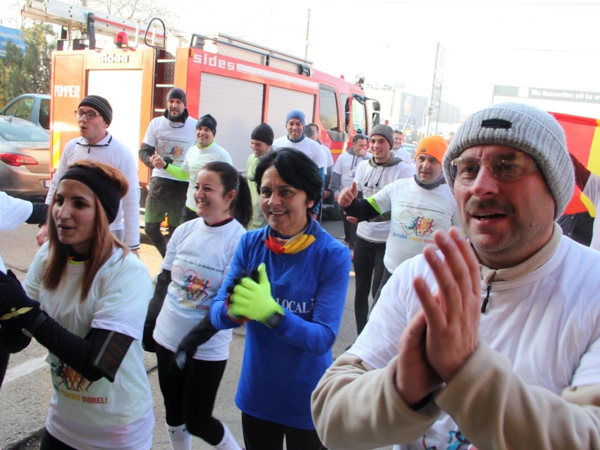 * vineri dimineaţă, începând cu ora 9.00, un grup format din 20 de pompieri, militari, poliţişti de frontieră, poliţişti locali dar şi civili, a plecat din faţa sediului ISU Galaţi, către sediul ISU Brăila * cei circa 25 de kilometri au fost parcurşi de alergători în aproape trei ore, cursa decurgând fără probleme în ciuda frigului şi a ceţei dense de pe digul Brăila - Galaţi * la intrarea în municipiul Brăila, în cursă au intrat încă 33 de pompieri brăileni * acţiunea a fost menită să atragă atenţia asupra situaţiei disperate în care se află pompierul brăilean Viorel Dima, diagnosticat cu cancer în urmă cu câteva luni * după ce medicii români i-au spus că nu are nicio şansă de supravieţuire, acesta a aflat că există un tratament care l-ar putea salva * un spital din Viena are capacitatea de a derula acest tratament, însă procedurile costă zeci de mii de euro, mult peste posibilităţile financiare ale familiei lui Viorel Dima
