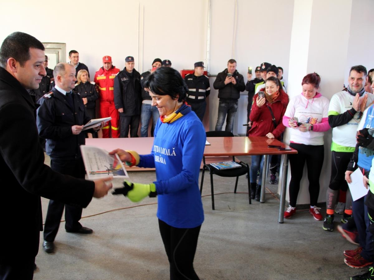 Toţi alergătorii au primit din partea ISU Brăila o diplomă de participare, iar un moment emoţionant a fost atunci când steagul purtat pe parcursul semimaratonului i-a fost oferit, în semn de respect, fratelului lui Viorel Dima, care activează, de asemenea, în cadrul Detaşamentului 1 Pompieri Brăila.