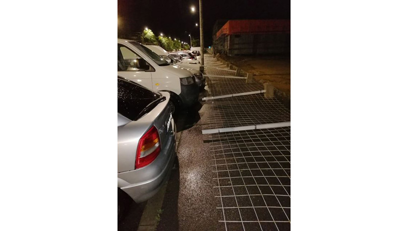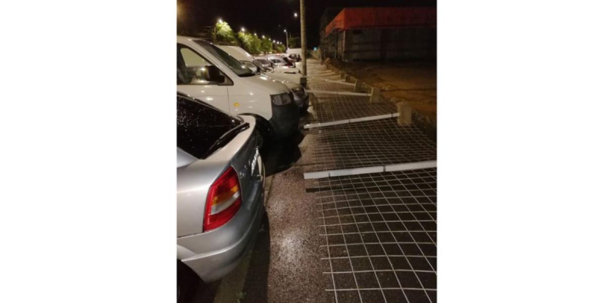 • gardul improvizat a fost dărâmat de furtuna de duminică seara • cei care îşi parchează maşinile în zonă se tem că situaţia s-ar putea repeta, existând riscul ca autoturismele să sufere avarii grave