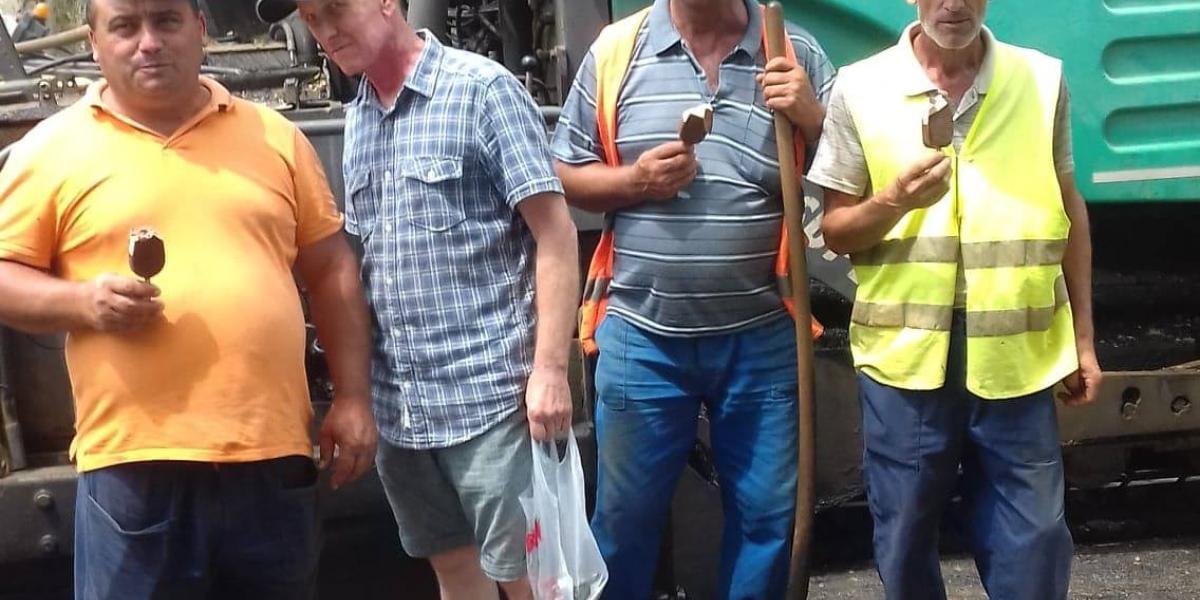 * lucrătorii care asfaltează străzile din cartierul Obor au fost luați prin surprindere de gestul unui locuitor care le-a cumpărat 10 înghețate * bărbatul care a făcut gestul de omenie le-a spus ca, în schimb, să se roage pentru sănătatea lui