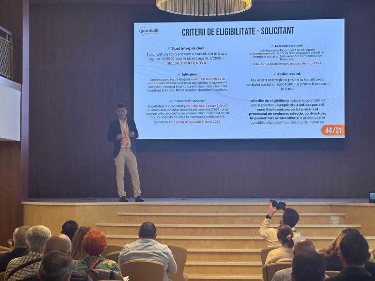 ”Este momentul în care orice IMM care îndeplinește criterii minime de eligibilitate – un an de activitate, profit din exploatare și capitaluri proprii pozitive – ar trebui să analizeze serios ce tip de finanțare poate accesa. Analizele noastre sunt gratuite și personalizate. Acum e timpul să construiești, nu să aștepți”, a precizat Bűkfeyes - Rákossy Zsombor, director național de vânzări, Goodwill Consulting, în cadrul conferinței.