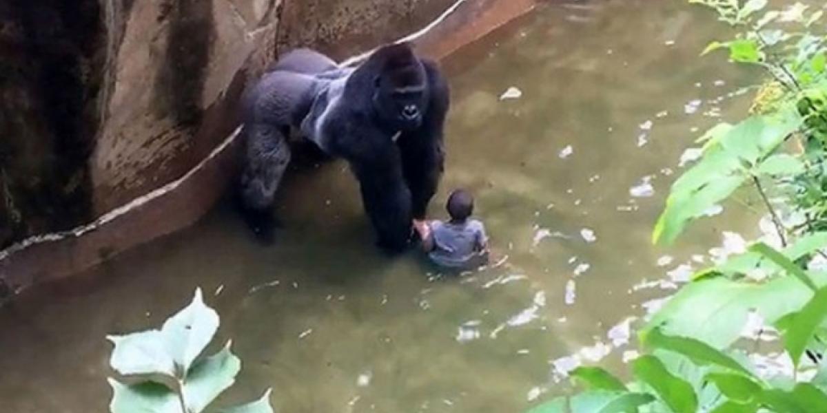Scapând de sub supravegherea mamei, copilul a căzut în fosa plină cu apă din cuşca gorilei. Imaginile cu animalul de aproape 200 de kilograme privind curios copilul, înainte de a-l târî prin apă, au făcut înconjurul lumii.