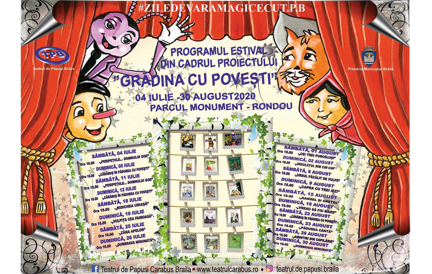 • în fiecare zi de sâmbătă şi duminică, de la ora 18.00, actorii Teatrului CĂRĂBUŞ din Brăila se vor reîntâlni cu publicul de toate vârstele la spectacole în aer liber în Parcul Monument, la Rondou