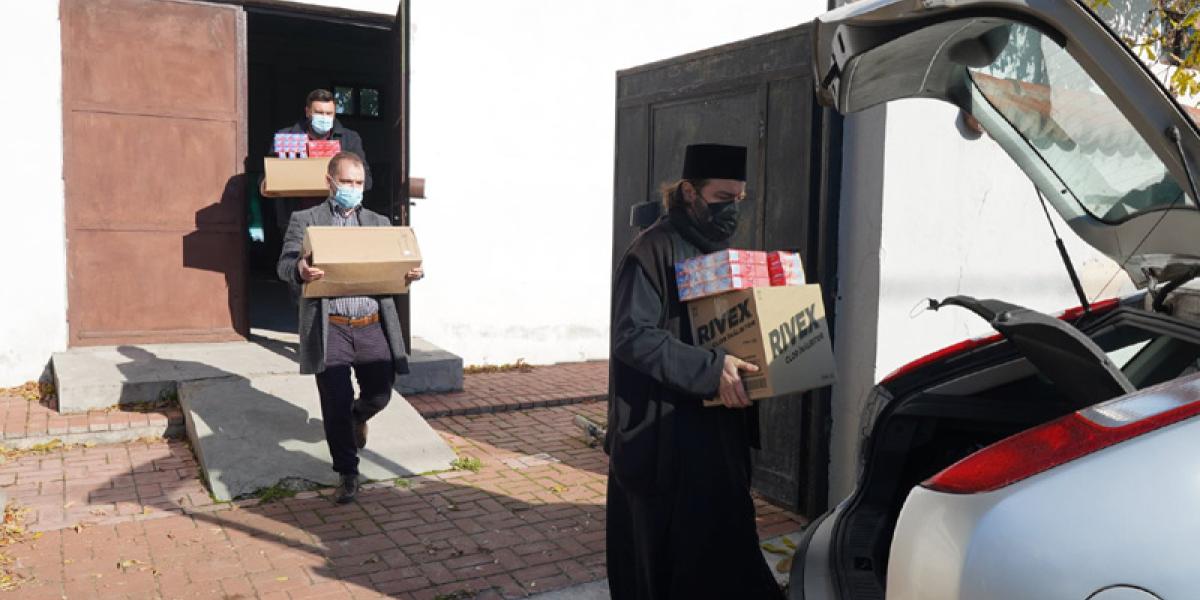 Potrvit părintelui Rareș Bucur, în ziua de miercuri, 20 octombrie, preoții și angajații Centrului Eparhial au distribuit Spitalulului Clinic de Boli Infecțioase ”Sfânta Cuvioasă Parascheva” din orașul vecin detergent, săpun lichid, mănuși chirugicale, manșete și încălțăminte de protecție în valoare totală de 11.600 lei. Această unitate sanitară asigură asistența medicală pacienților testați pozitiv cu virusul SARS-CoV-2, fiind desemnat în întregime ca spital suport COVID.