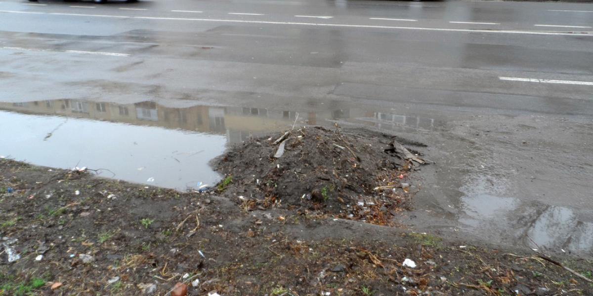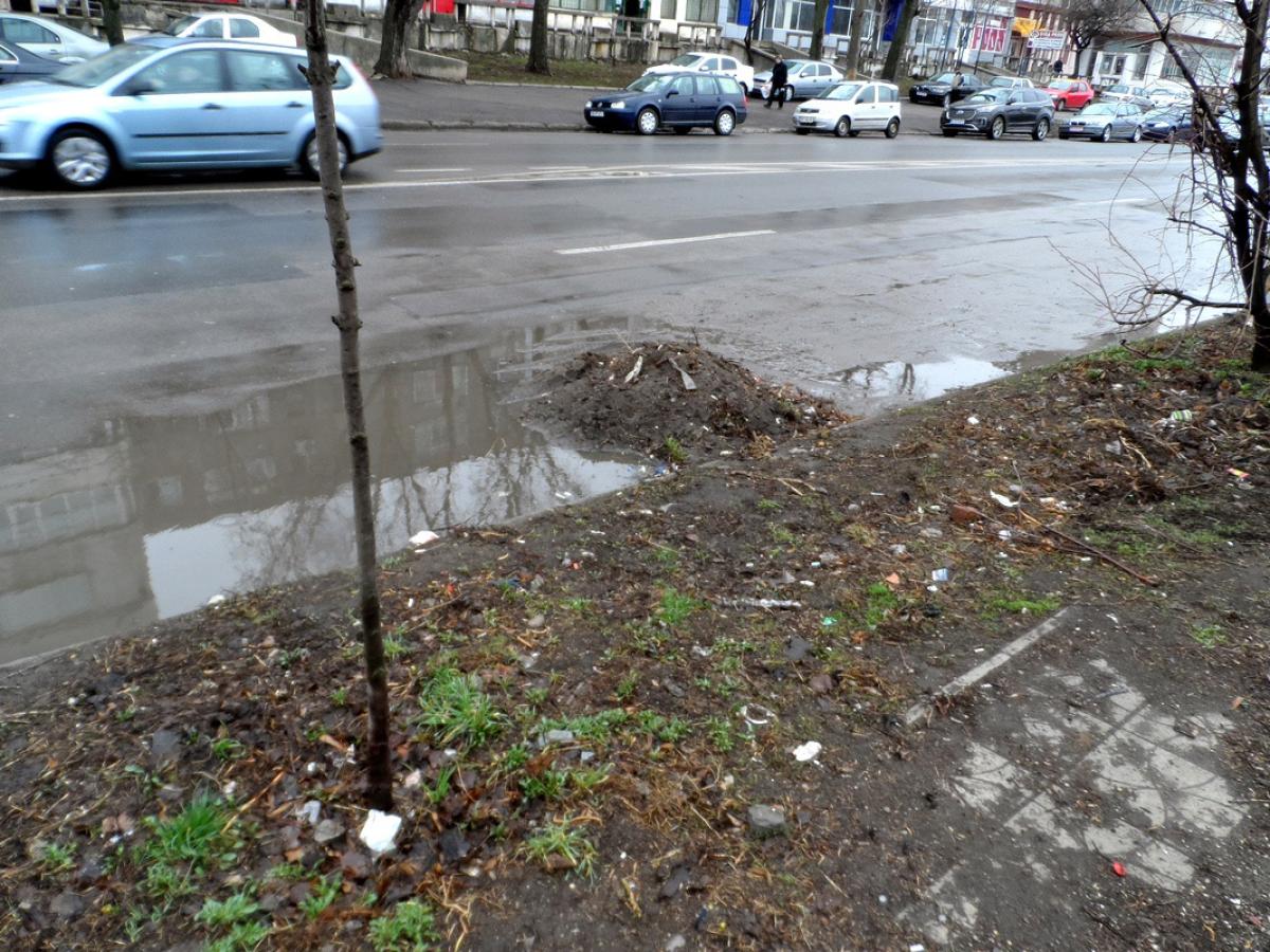 După ploaia de ieri, prezenţa acelor maldăre de deşeuri pe marginea străzii a făcut ca apa pluvială să nu se poată scurge spre gurile de canalizare, fapt ce a dus la formarea a ditamai bălţilor pe carosabil. Iar acesta este doar unul dintre impedimentele provocate de acele grămezi de pământ neridicate la timp, pentru că, dacă nu ar fi plouat, ar fi fost surse permanente de praf, ca să nu mai spunem că i-ar fi încurcat pe cei care circulă pe prima bandă a străzii.