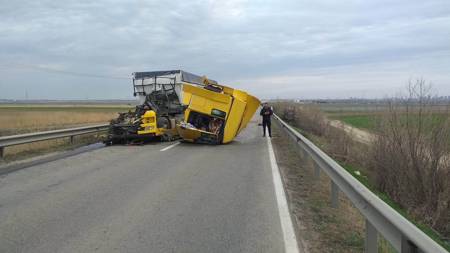 Un grav accident s-a produs în această dimineață, pe DN 2B, pe porțiunea dintre Baldovinești și Șendreni, în zona localității Vădeni. Din primele informații reiese că două autotrenuri au intrat în coliziune, după ce șoferul unuia dintre ele a făcut o depășire riscantă. Trei persoane au fost rănite. Traficul este blocat, fiind deviat, pentru autovehicule cu masa maximă autorizată de 3,5 tone, pe DN22B dig Brăila - Galați. Vom reveni.