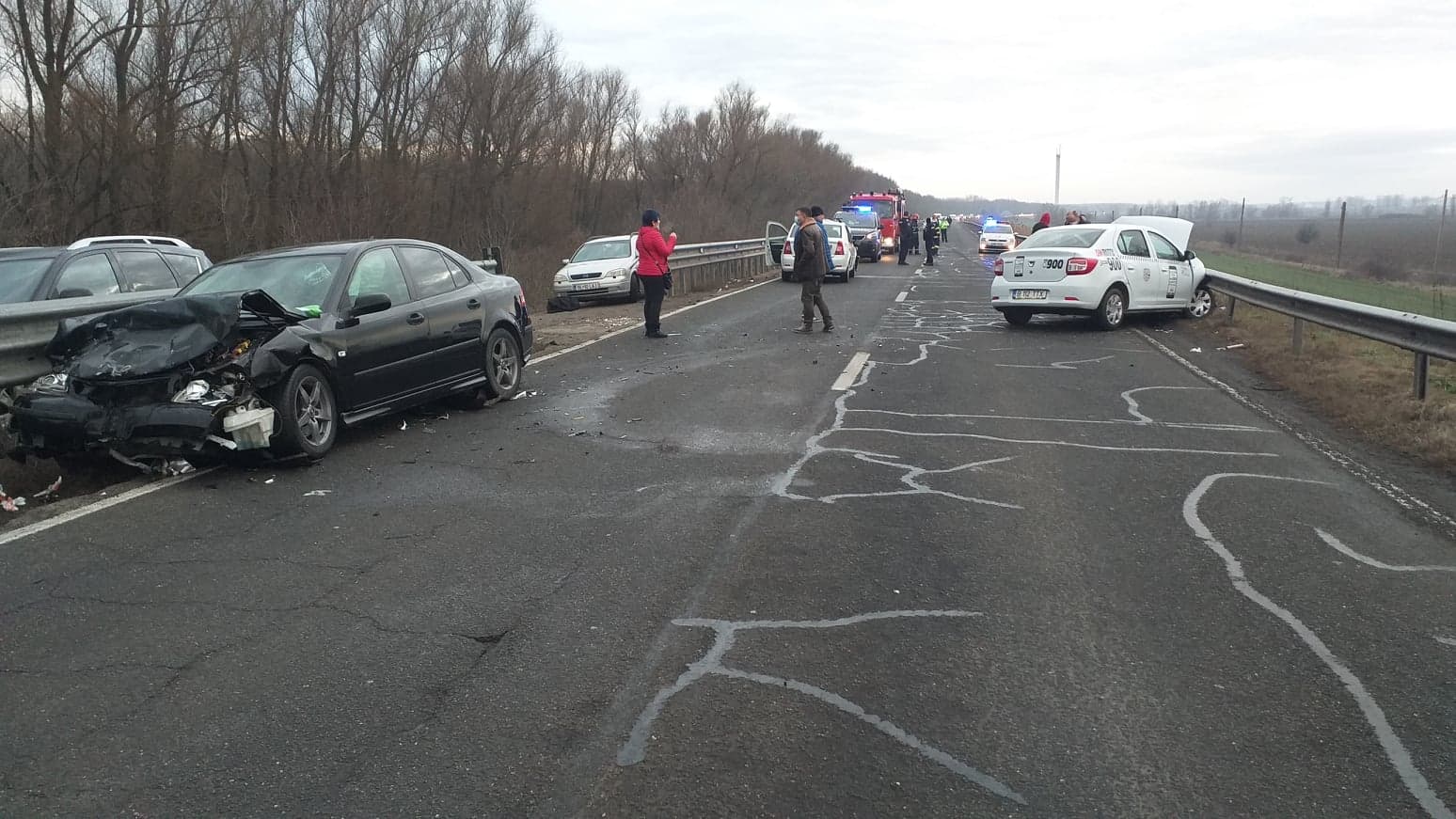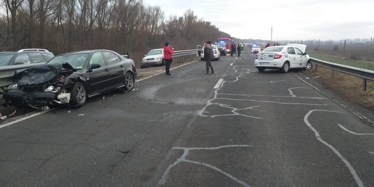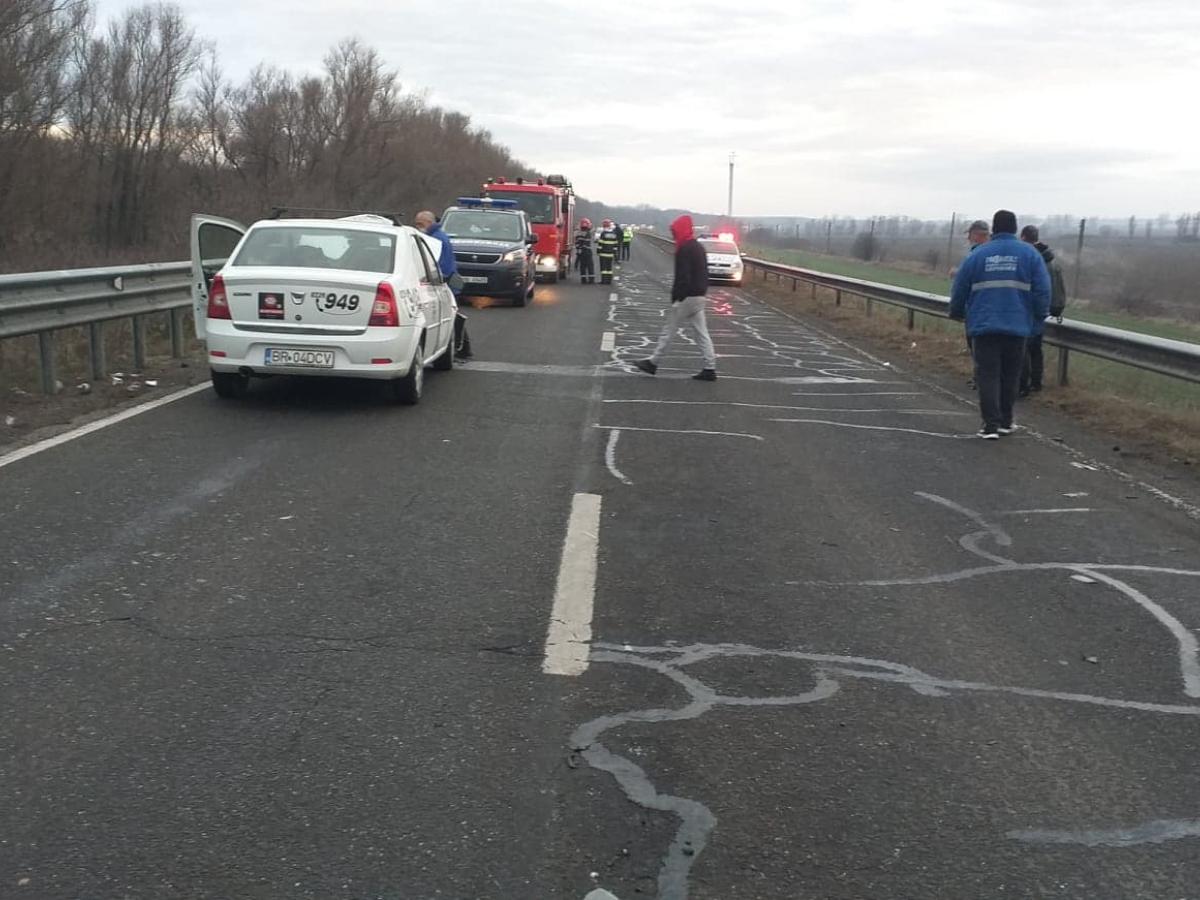 Accidentul s-a produs în această dimineață, după ce un taxi a intrat pe drumul național, de pe un drum secundar, fără să se asigure. A fost lovit în plin de un autoturism Saab, de culoare neagră, care a ricoșat în altă mașină. După producerea evenimentului, un alt taxi care se deplasa de la Galați spre Brăila a intrat în taxiul de la care a pornit totul. În urma incidentului au rezultat patru victime, transportate la spital. Pompierii au intervenit pentru a-l scoate din mașina grav avariată pe șoferul care, prin neatenția lui, a provocat accidentul în lanț.