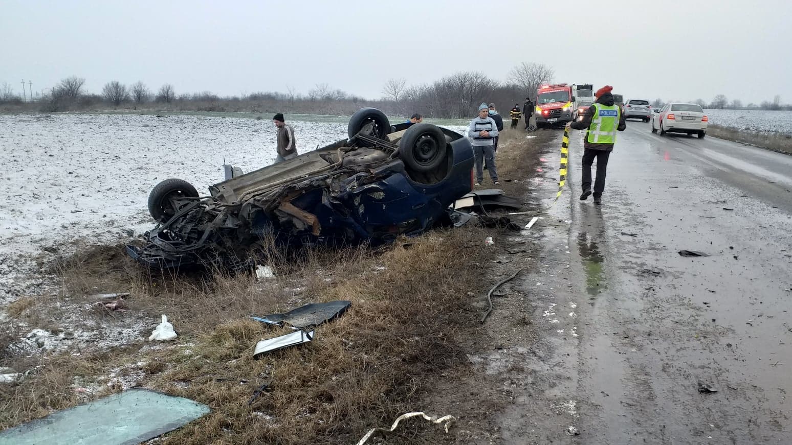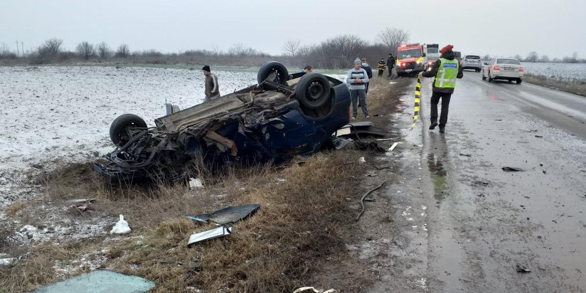 Grav accident în această dimineață pe DN 23 Brăila-Focsani. Un tânăr de 30 de ani, care se deplasa de la Muchea spre Brăila, a pierdut controlul volanului, derapând și intrând pe contrasens, unde s-a tamponat cu un TIR care se deplasa din sens opus. În urma impactului, autoturismul s-a răsturnat în afara drumului. Pentru descarcerarea tânărului a intervenit o autospecială a ISU Brăila. Șoferul autoturismului a fost preluat de o ambulanșă și transportat la spital, în stare gravă. Politistii au demarat cercetări pentru a stabili cu exactitate cauza producerii accidentului.
