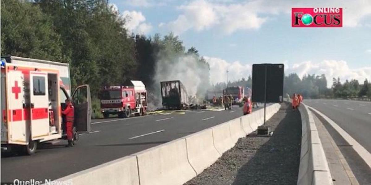 Accidentul a avut loc pe autostrada A9, între localitățile Münchberg și Gefrees, în landul Bavaria. În urma coliziunii, autocarul a luat foc și a ars complet.