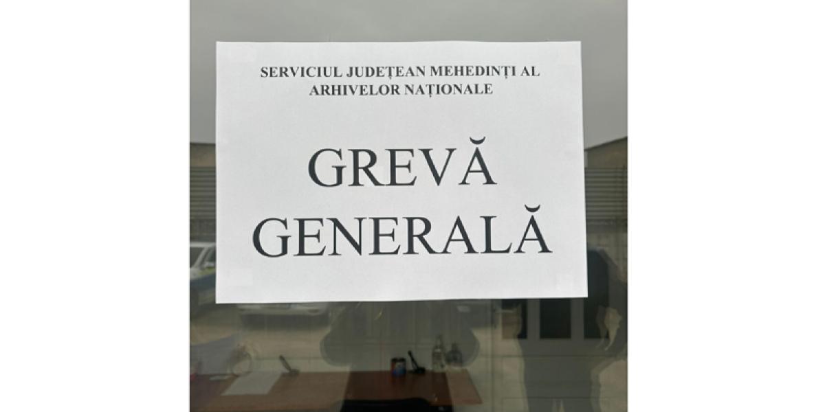 Potrivit unui comunicat al arhiviștilor din toată țara și al Sindicatului EUROPOL - document asumat în totalitate de către arhiviștii brăileni - angajații serviciilor județene și ai Serviciului Municipiului București din cadrul Arhivelor Naţionale ale României au intrat, începând de luni, 11 noiembrie 2024, în GREVĂ GENERALĂ, dat fiind faptul că, după acțiunea din 4 noiembrie (greva de avertisment), reprezentanții Ministerului Afacerilor Interne „nu au dat dovezi serioase că se apleacă asupra problemelor existente în cadrul serviciilor județene ale Arhivelor Naționale”.