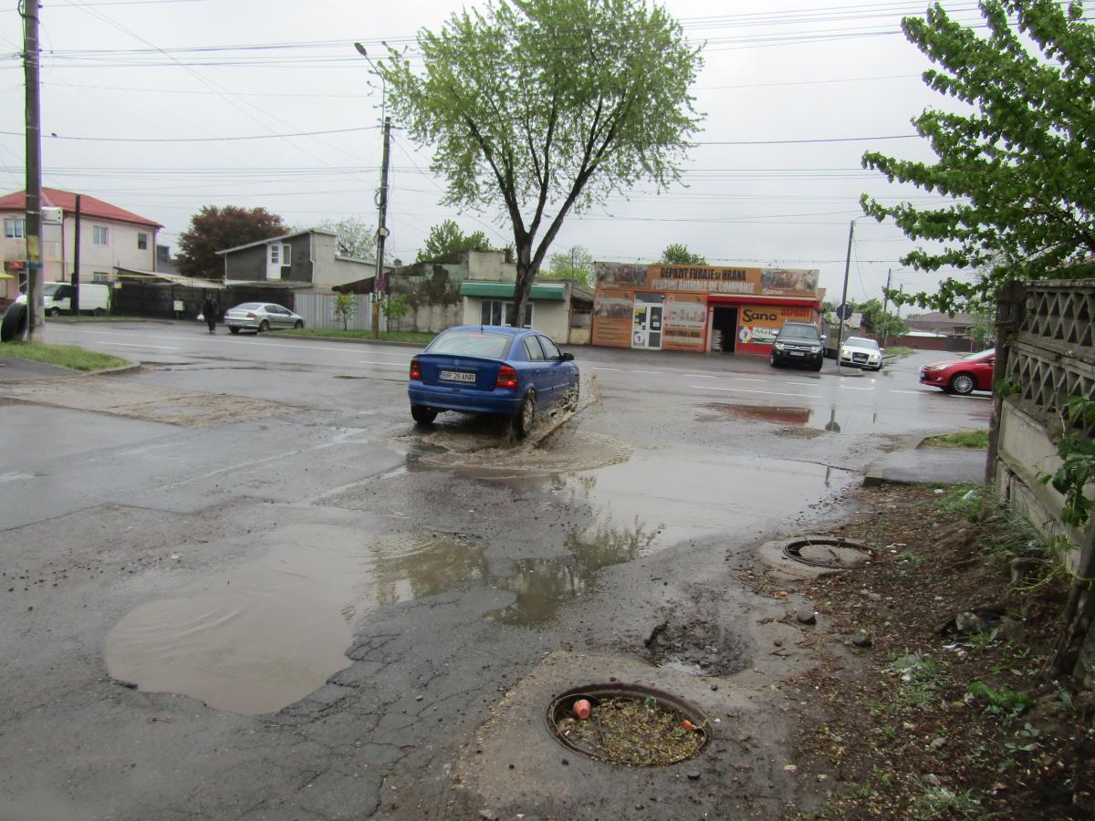 * deși situația persistă de ceva vreme, gropile neastupate continuă să facă ”victime” în rândul sistemelor de amortizare ale mașinilor * când plouă, situația este cu atât mai periculoasă cu cât șoferii nu au nicio idee despre cât sunt de adânci spărturile din carosabil mascate de bălțile cu apă