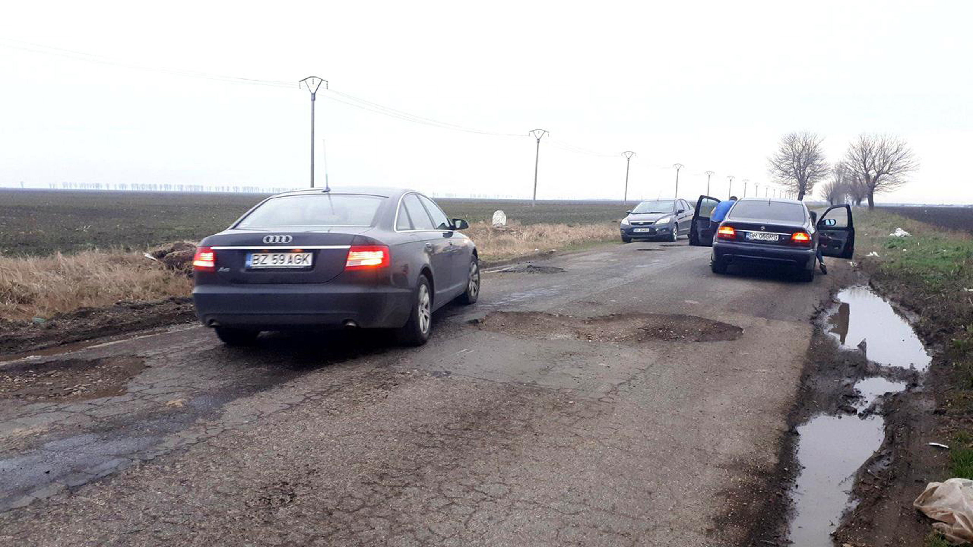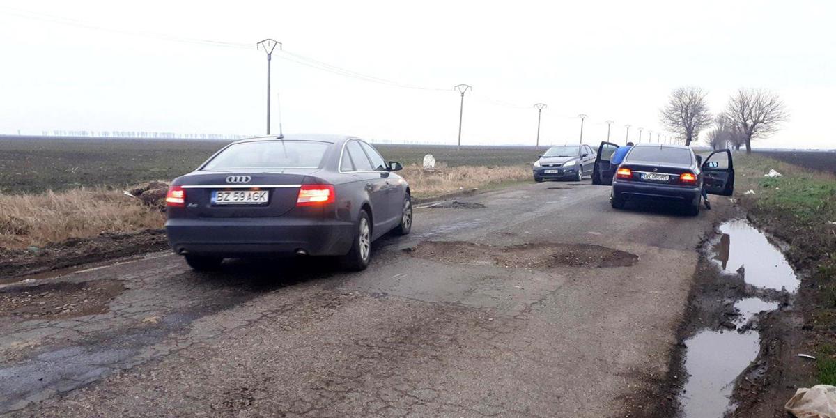 • o uriaşă spărtură apărută în carosabilul de pe drumul judeţean DJ 221, între Şuţeşti şi Ianca, a avariat serios trei automobile, în interval de numai o oră, pe parcursul zilei de sâmbătă, 17 martie • posesorii maşinilor au ajuns cu ele în service, dar măcar se bucură că au scăpat cu viaţă • unul dintre ei a ratat la milimetru un copac de pe marginea şoselei, după ce a tras de volan ca să evite groapa • ironia face ca tronsonul de drum respectiv să facă parte din “drumul mării”, pentru modernizarea căruia există un buget de peste 90 milioane de lei • deşi se vorbeşte de câţiva ani despre această investiţie, deocamdată lucrurile au ajuns abia în faza proiectului tehnic • abia la anul, prin primăvară ar putea începe lucrările propriu-zise, dar asta doar dacă nu or să apară contestaţii la licitaţii, ceea ce e greu de crezut • CJ promite, totuşi, că până la marea modernizare va plomba provizoriu gropile periculoase, cu firma care va fi stabilită câştigătoare a contractului de reparaţii a drumurilor judeţene • pentru acest contract, licitaţia a început în vara anului trecut şi nu s-a terminat nici până la ora actuală, din cauza contestaţiilor