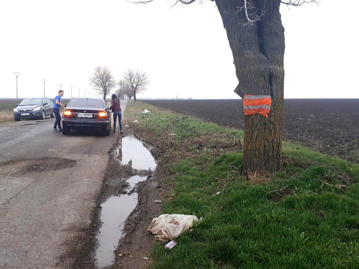 “Veneam de la Şuţu, mă duceam până la Plopu. Aveam viteză şi n-am mai avut timp să frânez, pentru că am observat groapa în ultimul moment. Nu e nici măcar semnalizată. Înclusiv baia mi-am lovit-o, că astea-s gropi de 40 centimetri şi n-ai cum să le ocoleşti, ori prin stânga, ori prin dreapta, tot în groapă mare dai. Pe lângă mine, au păţit-o şi alţi doi şoferi. Unul avea un Audi, iar celălalt un Volkswagen. Eu făceam pana şi n-am mai apucat să-i anunţ. Am auzit doar «zdrang-zdrang, buf!». Unul dintre ei a ajuns în şanţ, avea numere de Bacău. M-am dus la Poliţie, am sesizat groapa, iar când m-am întors la maşină, am găsit şi baltă sub maşină, adică mi-am lovit tare baia de ulei. Mi-am îndoit şi janta, am schimbat cauciucul... Măcar să pună o cracă, pe aia o vede omul. Le-am zis poliţiştilor să pună o cracă, mi-au răspuns că nu le pasă. Păi, dacă lor nu le pasă, ălora de la Drumuri nu le pasă, atunci cui?”, se întreabă retoric Adrian Aghache. Acesta a mai remarcat şi faptul că cineva, nu se ştie cine, a pus o vestă reflectorizantă într-un copac, pe post de avertisment. De altfel, singurul avertisment legat de gropile periculoase! “Uitaţi-vă hal de semnalizare! Dacă ei cred că aia-i semnalizare.... Hai, ziua ca ziua, dar noaptea? Vine unul noaptea, mai sunt tinerii ăştia cu BMW care merg cu 100 km/h. Ce fac ei? Păi, groapa asta e moarte sigură! Eu, personal, cam de 3-4 ori pe an merg pe drumul ăsta şi niciodată n-a fost bun. Mai ales după ce trece iarna, apar ditamai gropile. Astă vară l-au cârpit, nu asfaltat. Asta-i smoală cu nisip ce pun ei aici! Iau preţ de super-asfalt, şi la prima ploaie apar gropile”, ne-a mai spus şoferul revoltat. Un alt participant la trafic, care oprise pentru a-l ajuta pe Adrian Agache, ne-a avertizat că există tronsoane de drum chiar mai rele decât cel dintre Şuţeşti şi Ianca. “Să ştiţi că drumul Bordei Verde - Viziru e mult mai rău ca ăsta! Să nu circulaţi pe acolo! Gropile de aici sunt mici faţă de alea de acolo!”, ne-a avertizat bărbatul.