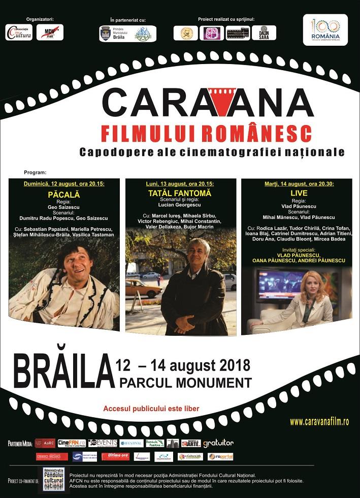* de Zilele Brăilei, în perioada 12-14 august, Caravana filmului românesc aduce în fața cinefililor trei proiecții care au legătură cu orașul de la Dunăre prin actori, regizori și locuri: „Păcală”, „Tatăl fantomă” și „Live” * serile de film vor avea loc în Parcul Monument iar intrarea este liberă