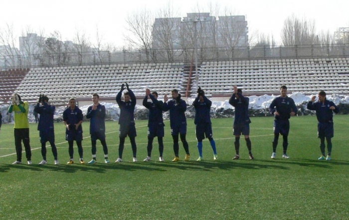 La câteva sute de metri de Sala Polivalentă, la Stadionul Municipal, se dispută o partidă de fotbal în care sunt implicate două formaţii care în această iarnă s-au întărit pentru a încerca să acceadă la turneul play off, CF Brăila - Farul Constanţa. Cu 14 puncte, brăilenii se află înaintea acestei dispute pe locul al 10-lea, iar constănţenii care au doar un punct mai mult ocupă poziţia a 9-a. Un succes în acest prim meci oficial din 2014 urcă echipa brăileană pe locul al optulea.