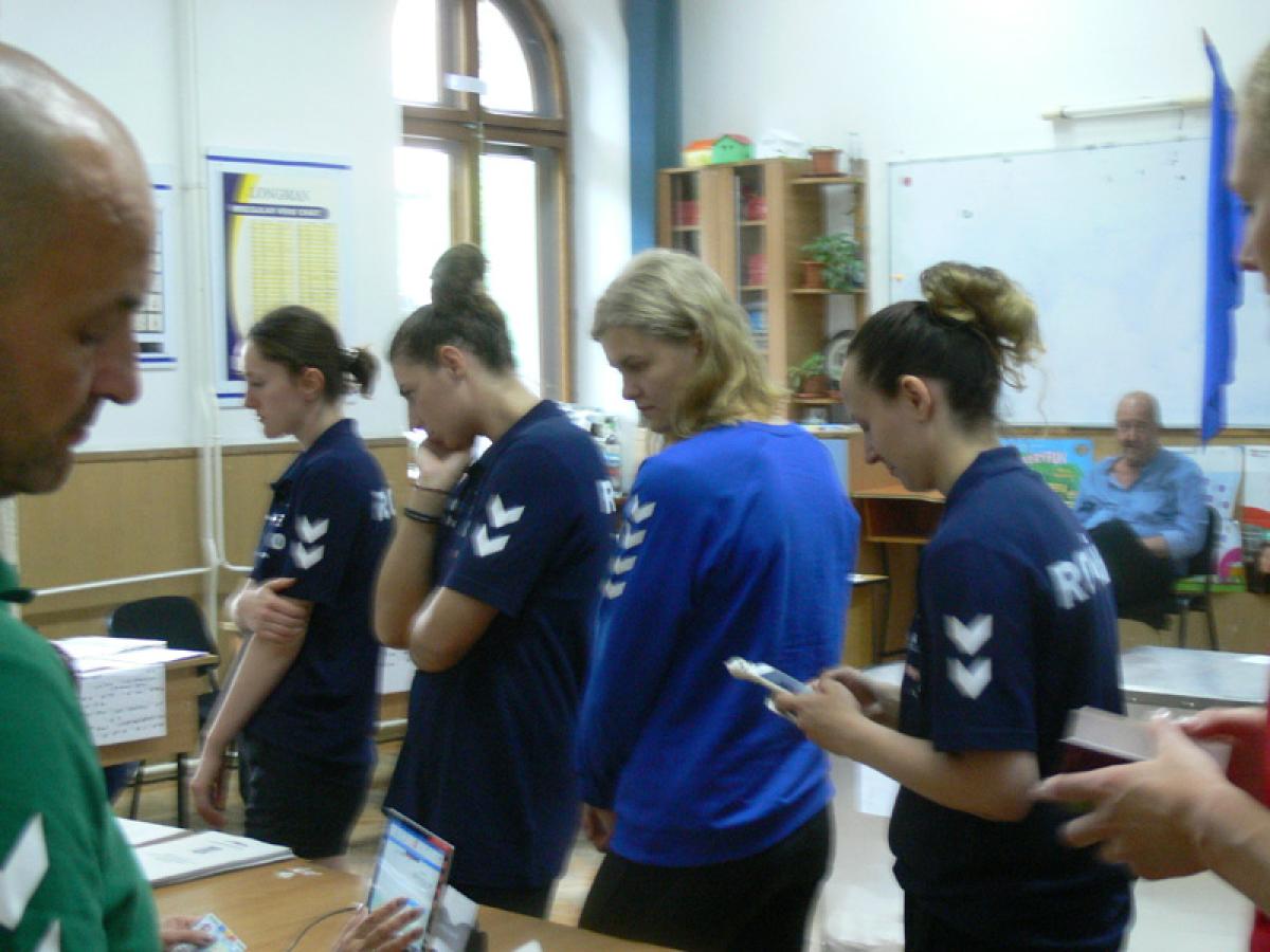 Aflate de vineri la Brăila, unde se pregătesc pentru Trofeul Carpaţi, handbalistele din lotul A al României au votat, ieri, în jurul orei 13.30, la Colegiul Naţional “Gheorghe Munteanu Murgoci”.