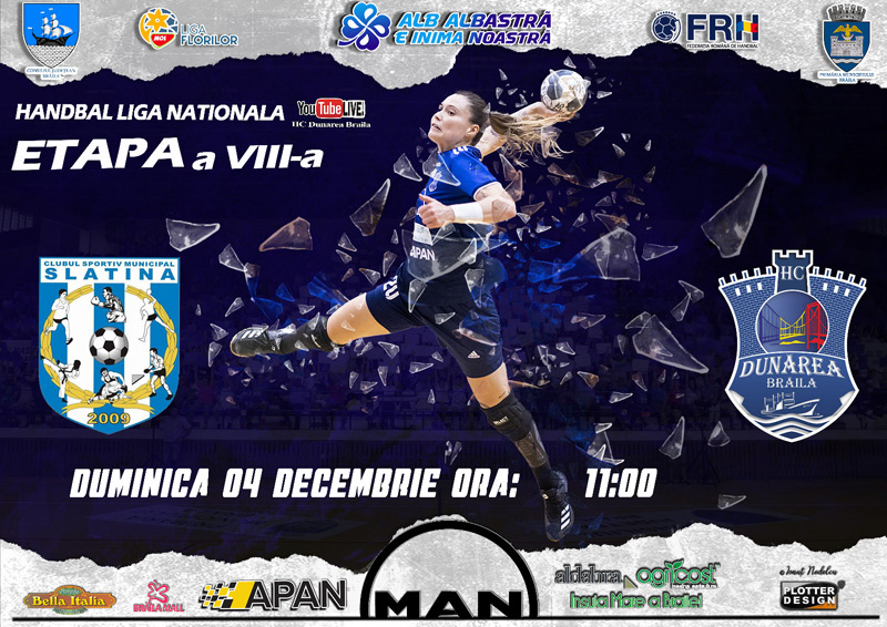 • duminică, în etapa a 8-a, HC Dunărea joacă în deplasare, la CSM Slatina • partida începe la ora 11.00 și poate fi urmărită live pe canalul de YouTube al HC Dunărea Brăila