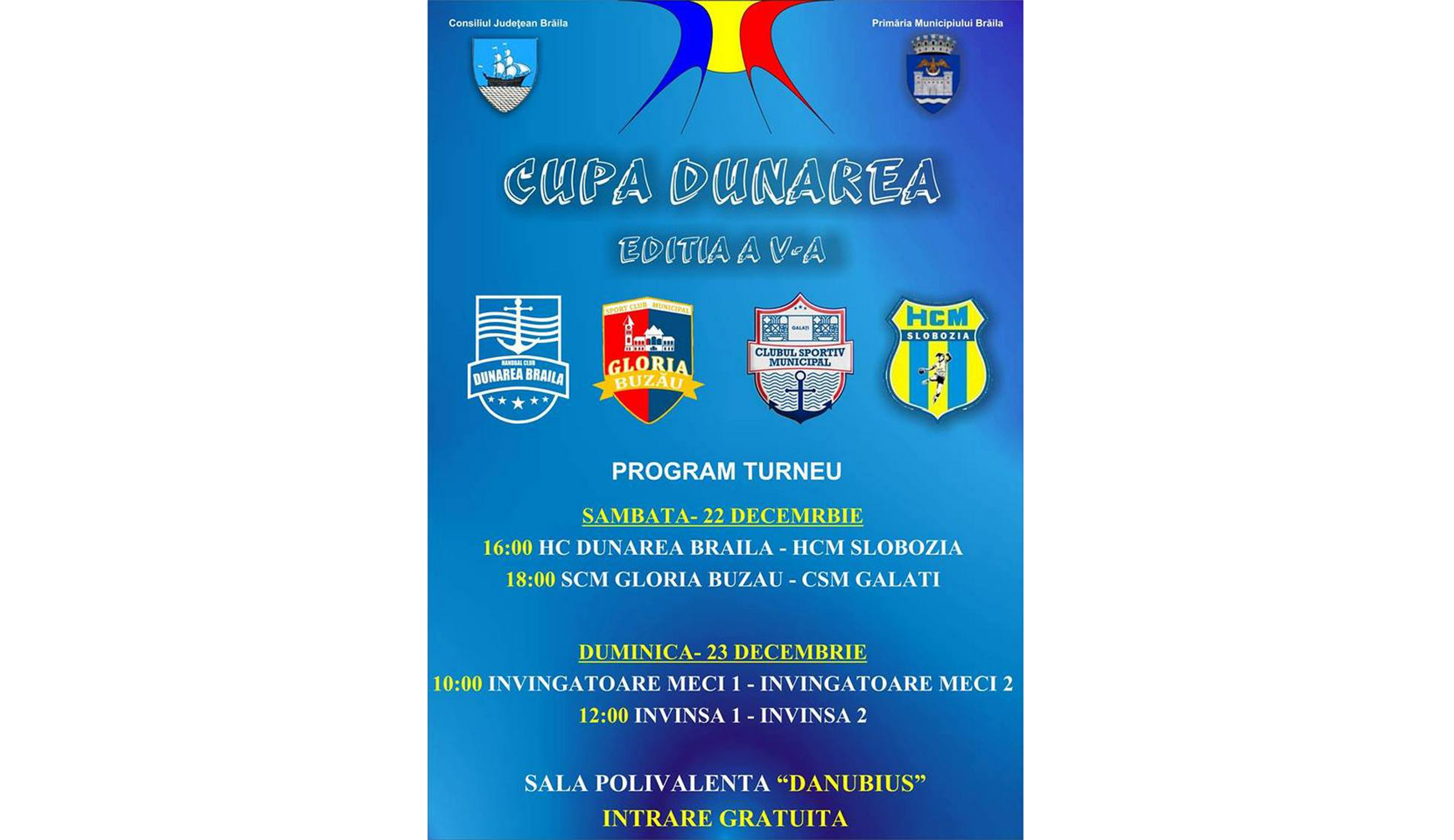 Sâmbătă, 22 decembrie, de la ora 16.00, în primul meci se întâlnesc HC Dunărea Brăila şi AHCM Slobozia, iar de la ora 18.00 adversare sunt SCM Gloria Buzău şi CSM Galaţi.