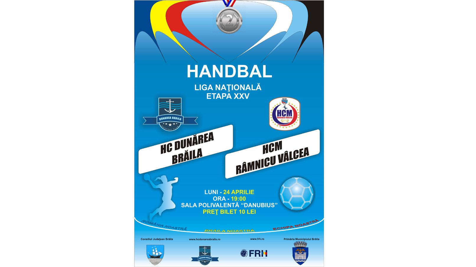 Luni, 24 aprilie, de la ora 19.00, în penultima etapă a returului Ligii Naţionale de handbal feminin, HC Dunărea va juca cu medaliile pe masă, partida cu HCM Râmnicu Vâlcea. Iar dacă va câştiga, iar valoarea lotului recomandă formaţia brăileană ca principală favorită la victorie, trupa pregătită de Costică Buceschi şi Cristian Preda devine oficial vicecampioană a României. Medaliile de argint ar reprezenta practic cea mai mare performanţă din istoria clubului brăilean. Meciul va avea loc în Sala Polivalentă „Danubius”, iar accesul în sală se va putea face de la ora 17.30. Biletele pentru acest meci s-au pus în vânzare încă de marţi, iar brăilenii au posibilitatea de a-şi procura în continuare tichete până vineri, în intervalul 10.00 - 16.00, de la Sala Polivalentă “Danubius”. Preţul unui bilet este de 10 lei.