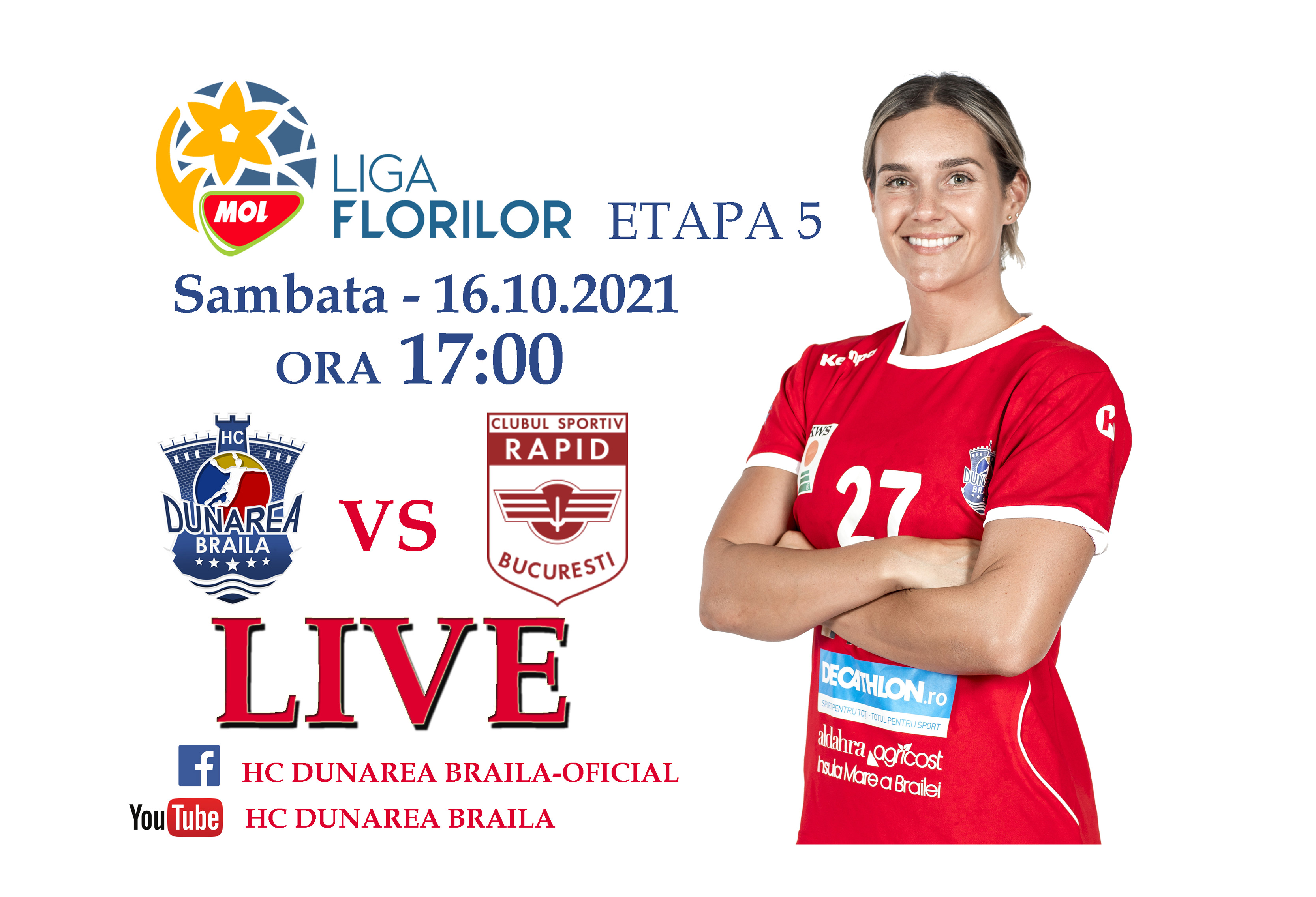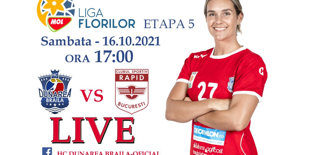 HC Dunărea Brăila dispută sâmbătă meciul din etapa a 5-a a Ligii Florilor, în compania echipei Rapid București. Partida va începe la ora 17.00 și va fi transmisă LIVE de HC Dunărea pe paginile de Facebook și de Youtube ale clubului. Meciul este unul extrem de important pentru echipa brăileană care își dorește să se mențină pe primul loc în clasament.