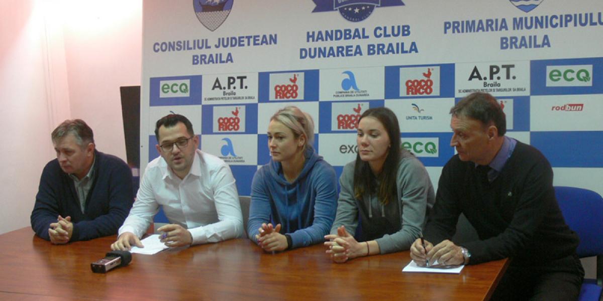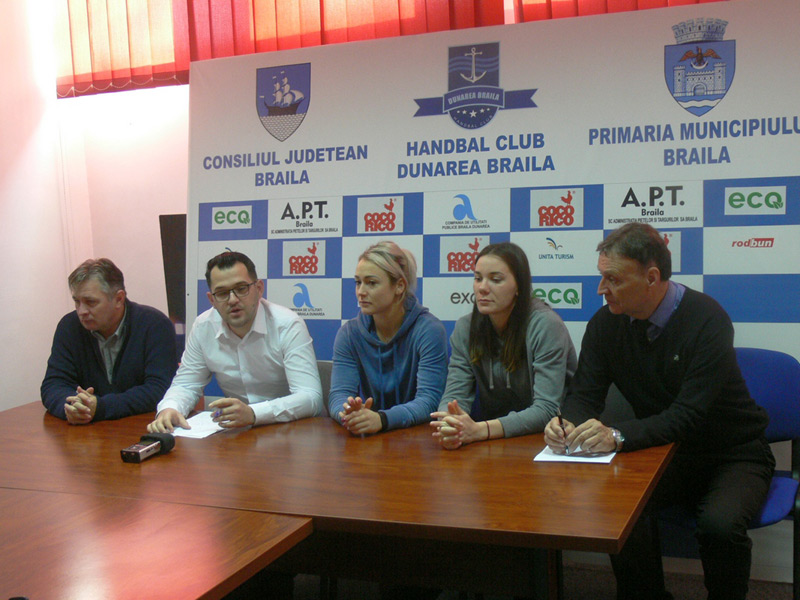 Ieri la prânz, la sediul clubului HC Dunărea de la Sala Polivalentă a avut loc o conferinţă de presă în cadrul căreia George Caranica, preşedintele grupării handbalistice brăilene, a prezentat motivele pentru care echipa pe care o conduce traversează un sezon slab. Din partea clubului brăilean au mai participat vicepreşedintele Marian Neta, antrenorul principal Aurelian Roşca şi două dintre jucătoarele importante din acest moment, Alina Vătu, care este şi căpitanul formaţiei brăilene, şi Elena Dache. “Eu cred în această echipă care creşte de la zi la zi sunt convins că vom face lucruri frumoase împreună”, a spus antrenorul Aurelian Roşca la început, astfel că evenimentul de la Sala Polivalentă s-a desfăşurat într-o atmosferă de optimism. Asta deşi s-au prezentat o serie de factori care au influienţat parcursul echipei în acest an, iar efectele se vor mai resimţi un timp.