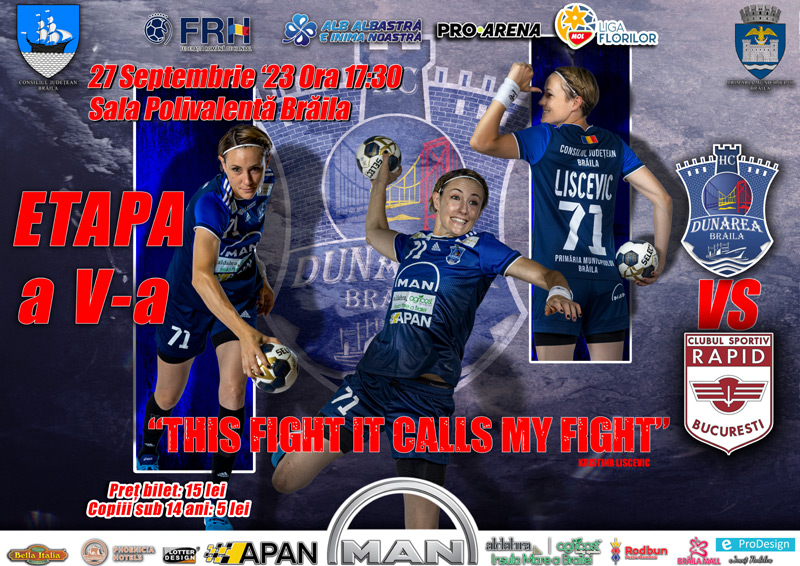 Pe 27 septembrie, în etapa a 5-a a turului Ligii Florilor, HC Dunărea va juca în Polivalentă cu Rapid București, de la ora 17.30 Biletele se vor pune în vânzare în ziua jocului, începând cu ora 15.00, prețul unui bilet fiind de 15 lei.