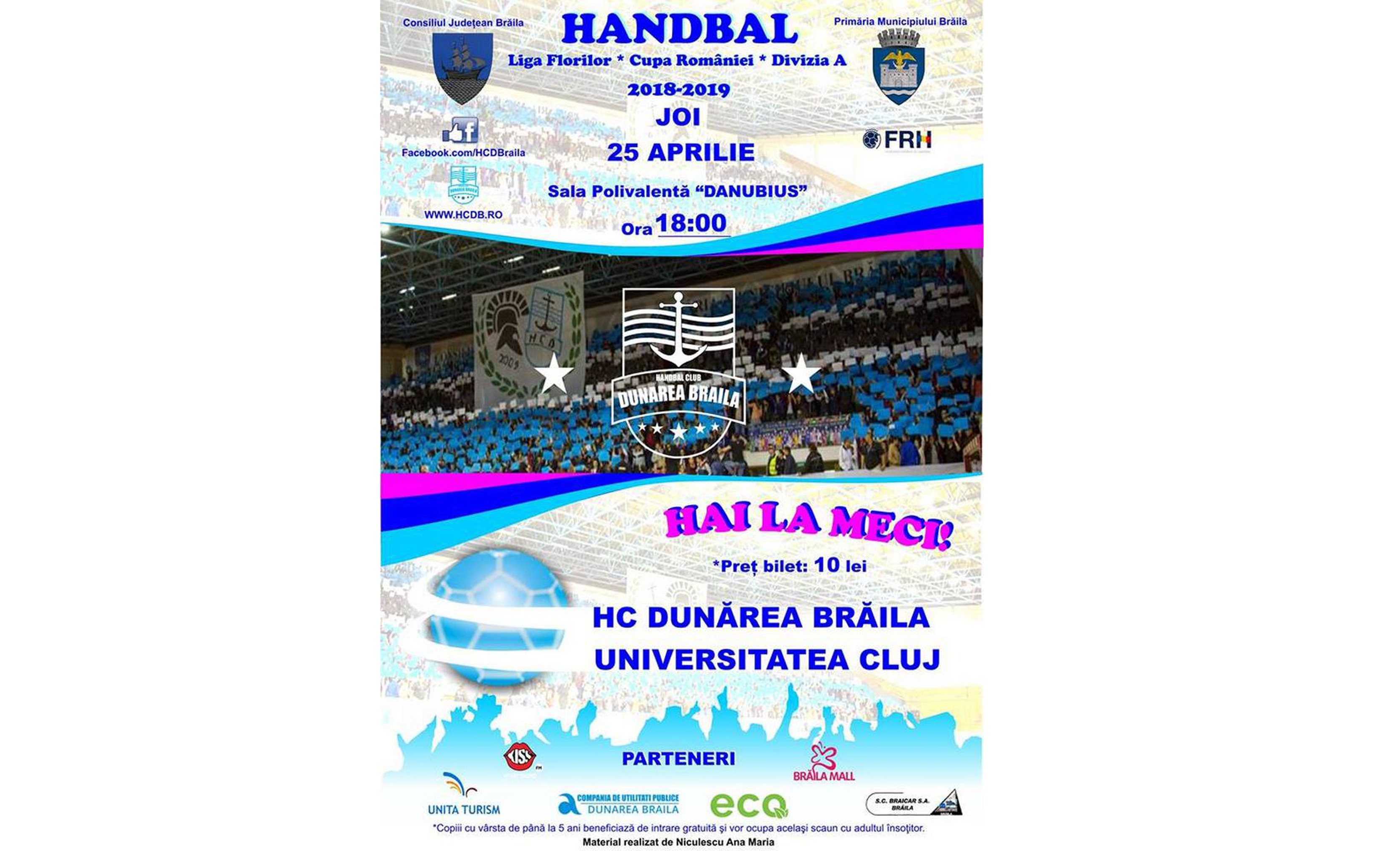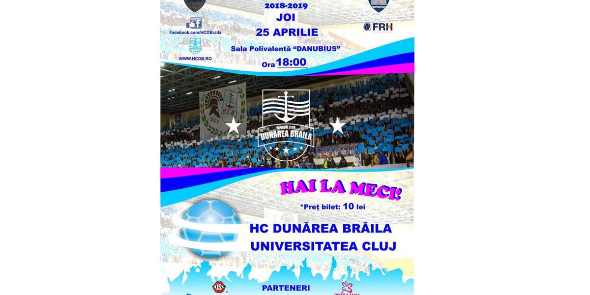 Astăzi, de la ora 18.00, HC Dunărea, locul al 11-lea, joacă în Sala Polivalentă cu CSU Cluj-Napoca, locul al 12-lea, un meci foarte important pentru trupa pregătită de Aurelian Roşca. Formaţia brăileană este obligată să câştige acest joc pentru a mai face un pas important în evitarea barajului de menţinere în Liga Florilor.