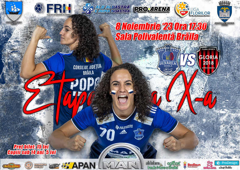 Astăzi, 8 noiembrie, în etapa a 10-a a turului Ligii Florilor, HC Dunărea, locul al 4-lea, va juca de la ora 17.30 cu Gloria Bistrița, formație aflată pe poziția a 6-a.