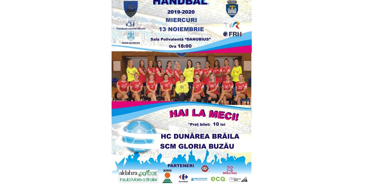 Partida HC Dunărea Brăila - Gloria Buzău va fi transmisă în direct pe pagina de facebook: HC Dunarea Braila oficial.