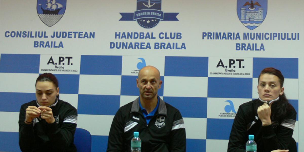 Astăzi, de la ora 18.45, HC Dunărea, lidera campionatului va juca în Sala Polivalentă cu HC Zalău într-un meci contând pentru etapa a 6-a a Ligii Naţionale de handbal feminin. Partida de astăzi a fost prefaţată luni, în cadrul unei conferinţe de presă de antrenorul Costică Buceschi şi jucătoarele Gabriela Perianu şi Bianca Tiron. Tehnicianul brăilean şi-a avertizat jucătoarele cu acest prilej că meciul cu Zalăul trebuie tratat cu mare atenţie deoarece lotul echipei lui Tadici a suferit mari modificări în această vară. “Postura de lideră pe care o deţinem la acest moment nu este una elocventă, abia au trecut cinci etape iar campionatul este lung. Întâlnim o echipă a Zalăului nouă, cu o altă dinamică a jocului, faţă de cea din sezonul trecut şi cu un antrenor Gheorghe Tadici care vrea să câştige meci de meci. Dar şi noi ne-am luat măsuri de precauţie, am pregătit meciul pentru o nouă victorie”, a declarat Costică Buceschi.