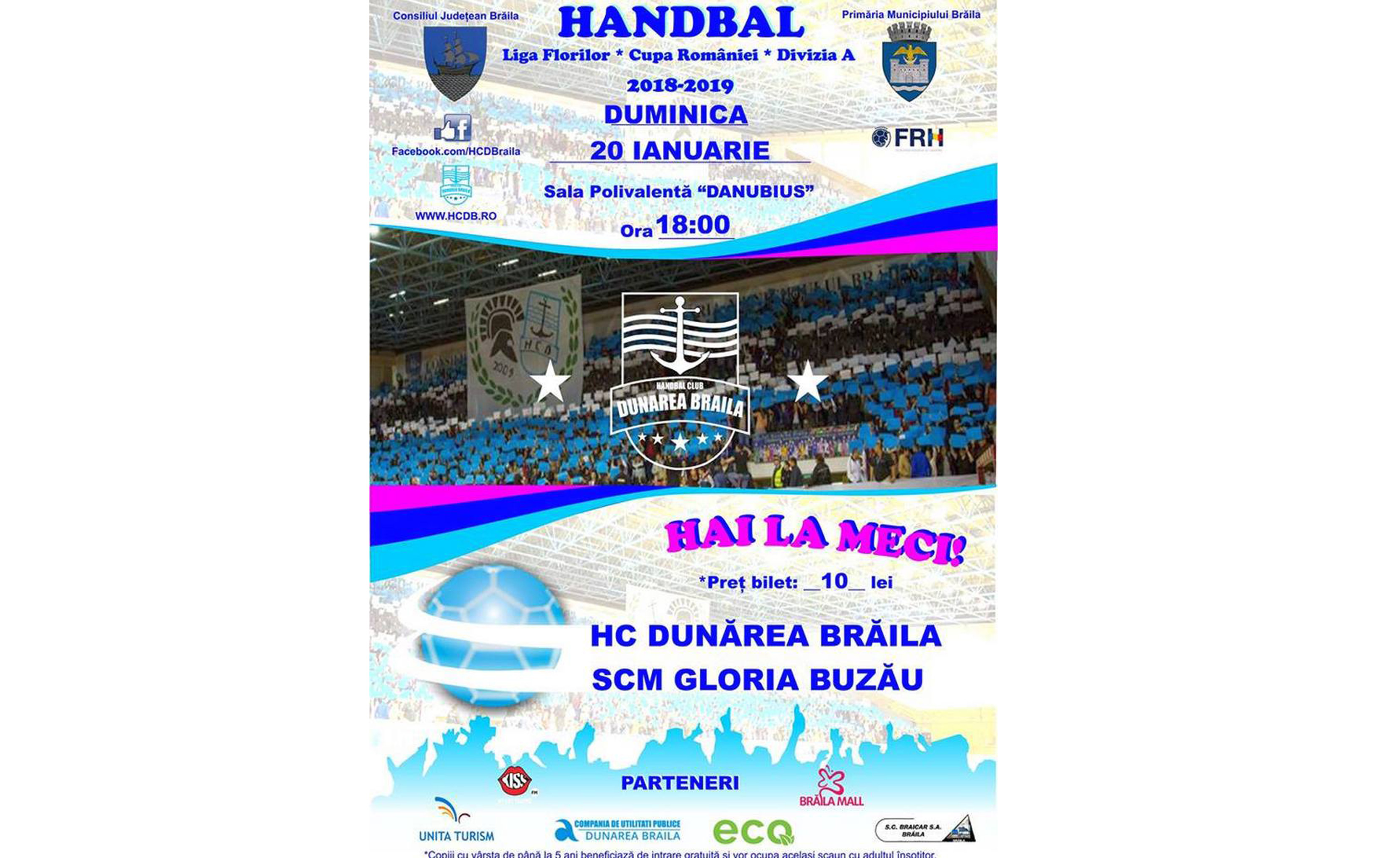 Duminică, în etapa a 13-a, ultima a turului Ligii Florilor la handbal feminin, HC Dunărea, locul al 11-lea, va juca de la ora 18.00, în Sala Polivalentă cu Gloria Buzău, formaţie aflată pe poziţia a 6-a.