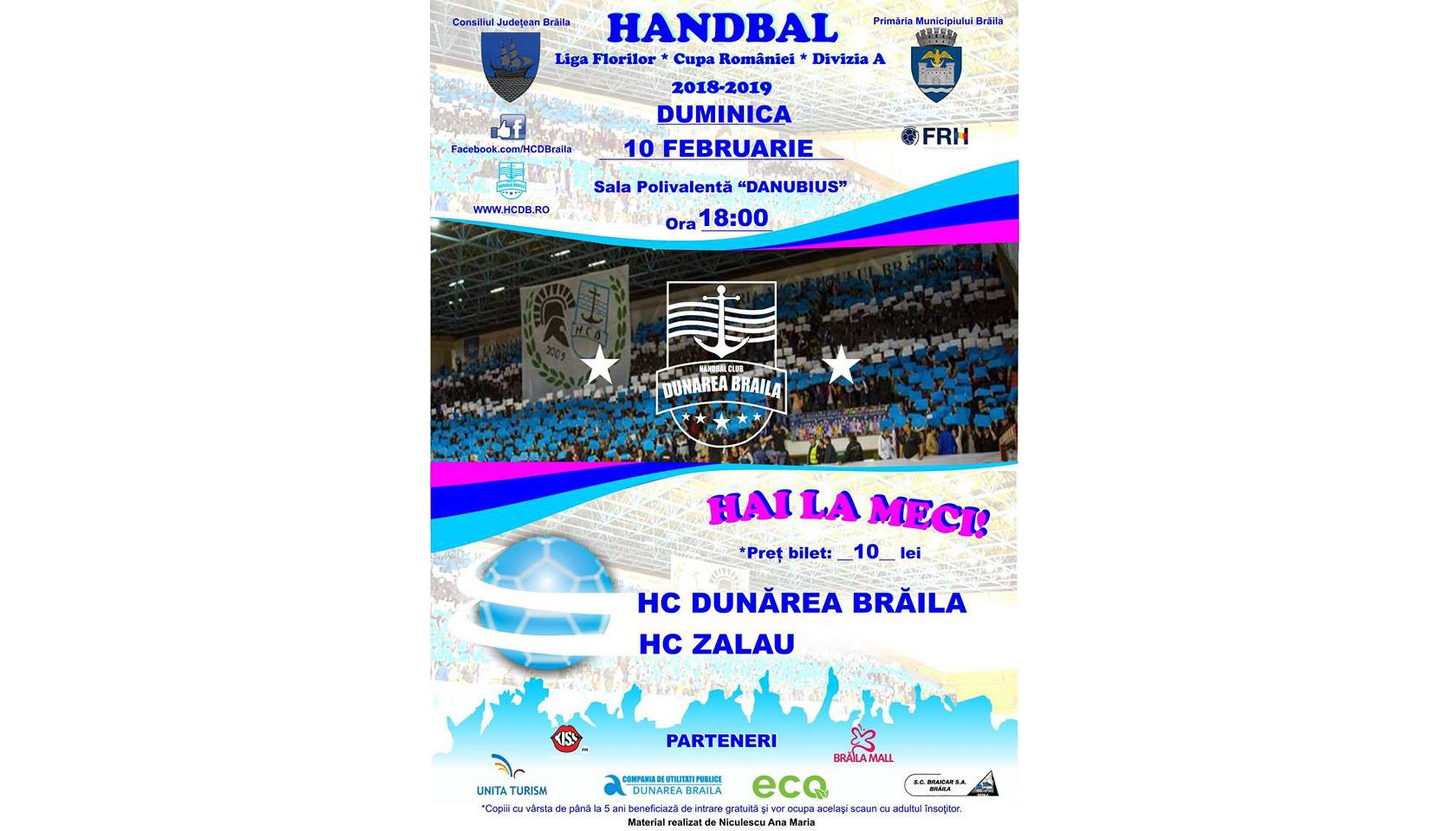 Etapa a 16-a a Ligii Florilor programează în acest weekend patru meciuri, printre acestea figurând şi cel de la Brăila dintre HC Dunărea Brăila, locul al 11-lea, şi HC Zalău, formaţie aflată pe poziţia a 5-a în calsamentul Ligii Florilor. Partida din Polivalentă este programată duminică, 10 februarie, de la ora 18.00.