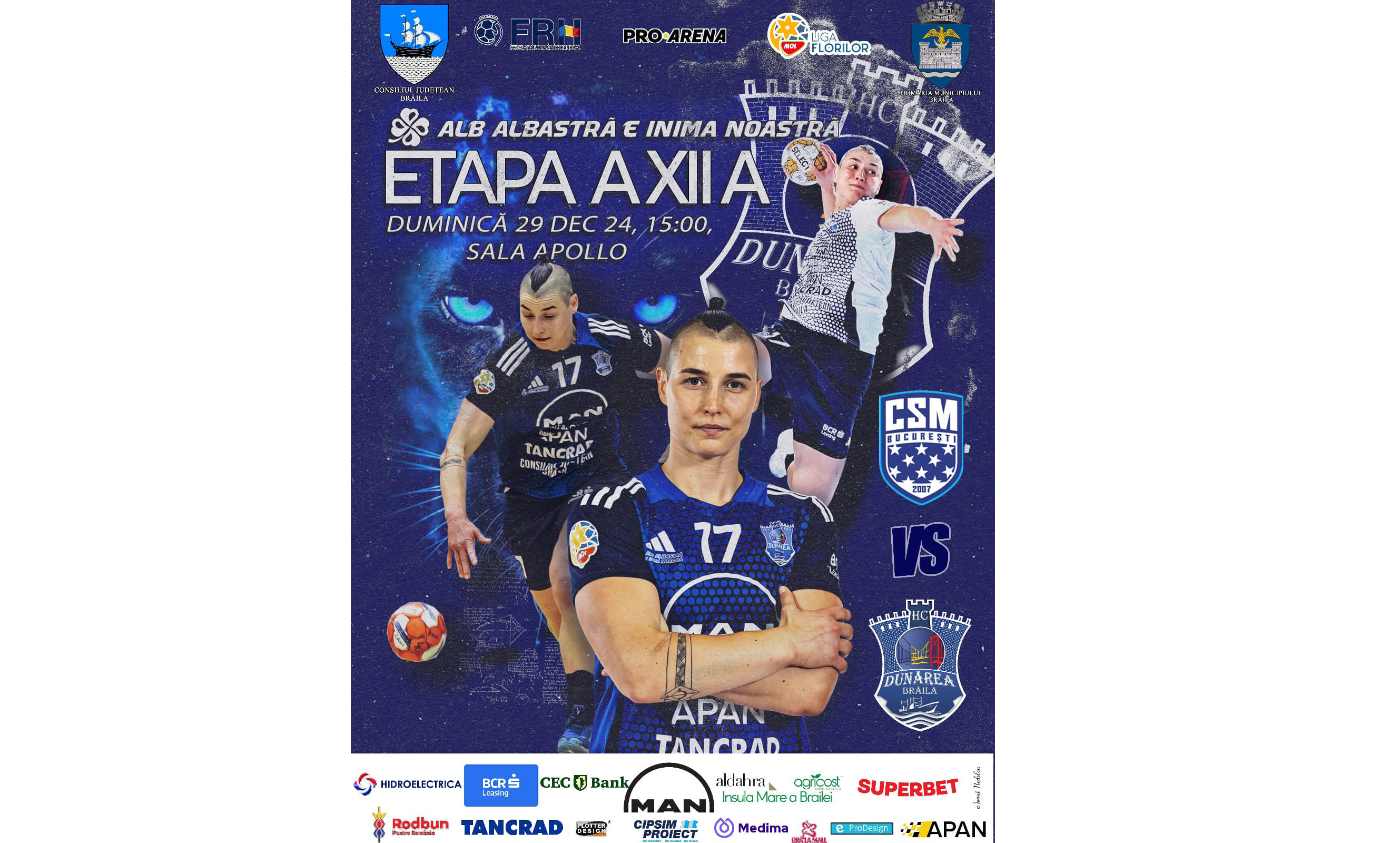 Duminică, 29 decembrie, de la ora 15:00, sala Apollo din București va găzdui partida din etapa a 12-a a Ligii Florilor dintre campioana en titre, CSM București, și HC Dunărea, un meci între două echipe care reprezintă România în cupele europene. Formația bucureșteană, la care activează și Cristina Neagu, se află pe locul al 4-lea în Grupa A a Ligii Campionilor. HC Dunărea, după ce în sezonul anterior a ajuns în Final Four-ul EHF European League, este calificată direct în grupele acestei competiții și în acest an. Așa că se anunță un meci interesant, între două dintre cele mai bune echipe din handbalul feminin românesc.