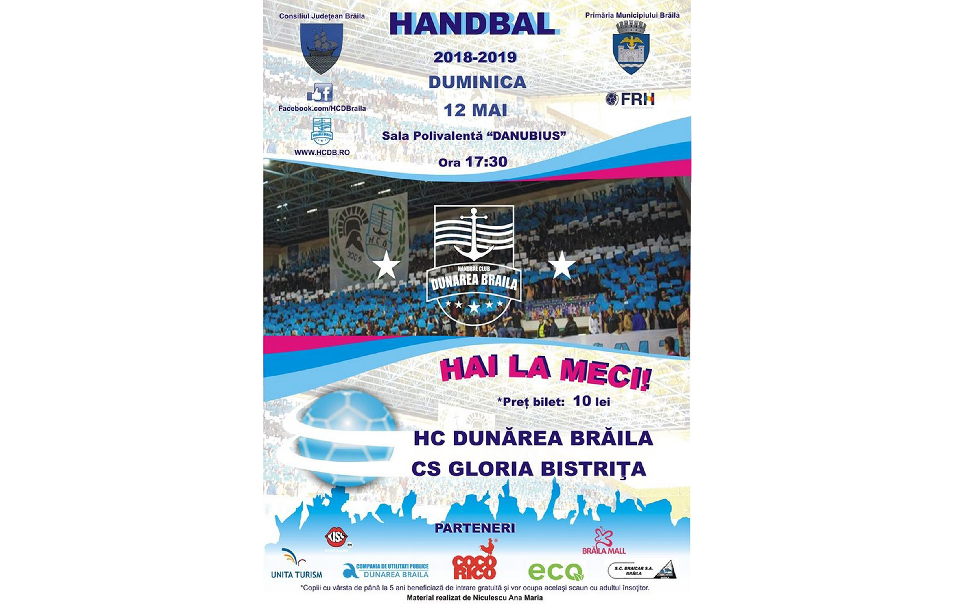 • adversara handbalistelor pregătite de Aurelian Roşca este Gloria Bistriţa-Năsăud, ocupanta locului al treilea • “Antrenorul Aurelian Roşca şi elevele sale doresc o nouă victorie care să mulţumească publicul generos din Brăila”, a declarat profesorul Marian Neta, vicepreşedintele clubului brăilean