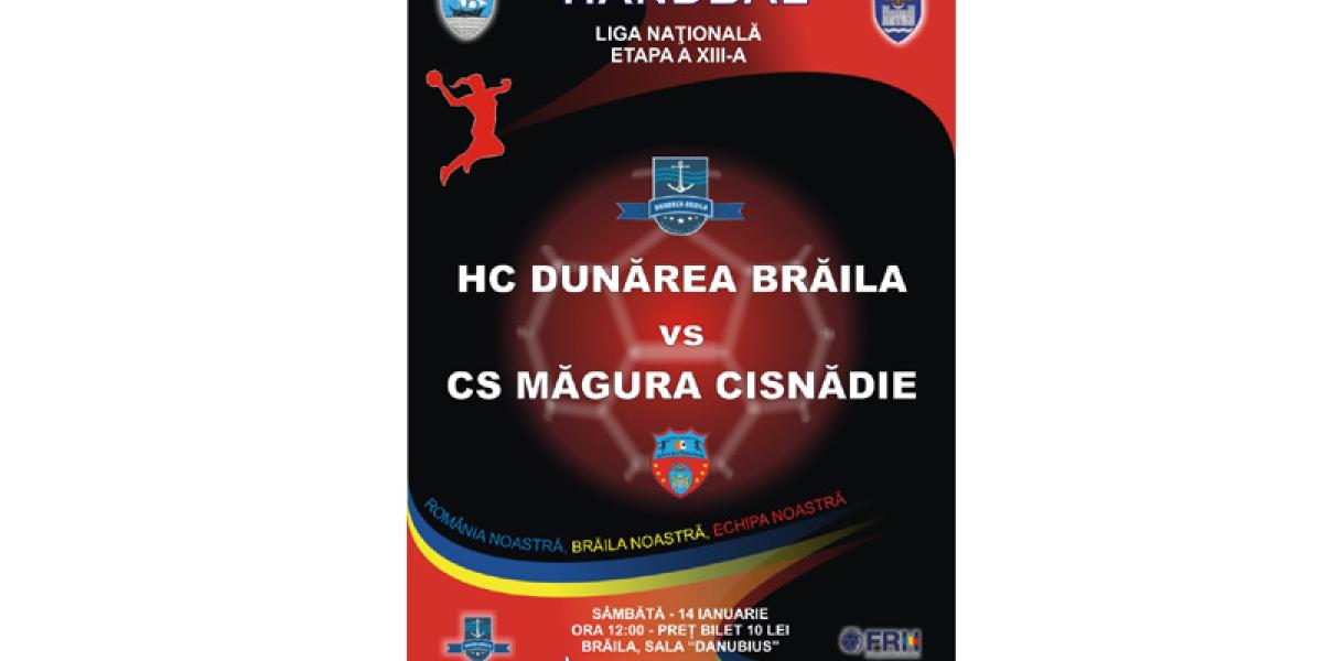 Sâmbătă, de la ora 12.00, HC Dunărea va juca pe teren propriu cu Măgura Cisnădie, partida fiind arbitrată de bucureştenii Theodor Şerbu şi Andrei Vasilescu. Accesul publicului în Sala Polivalentă este permis începând cu ora 10.30, preţul unui bilet fiind de 10 lei. Înaintea ultimei etape a turului Ligii Naţionale de handbal feminin, HC Dunărea se află pe locul al doilea, iar adversara sa, la care evoluează şi fosta jucătoare a formaţiei brăilene, Ada Moldovan, ocupă poziţia a 10-a. Ambele formaţii au pierdut în etapa precedentă, Măgura Cisnădie a fost învinsă cu 24-23, pe teren propriu, de HCM Roman, iar HC Dunărea a pierdut la o diferenţă de şase goluri, 25-19, la HCM Râmnicu Vâlcea. Partida de sâmbătă din Sala Polivalentă se anunţă a fi una incendiară în condiţiile în care formaţia din Cisnădie şi-a menajat trei jucătoare importante etapa trecută, printre care şi pe Ada Moldovan, pentru a face o figură frumoasă la Brăila.