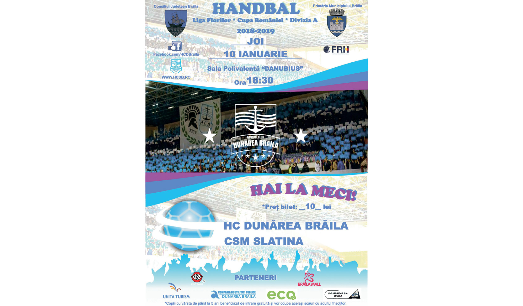 HC Dunărea Brăila - CSM Slatina, joi, 10 ianuarie